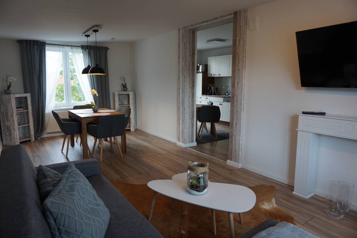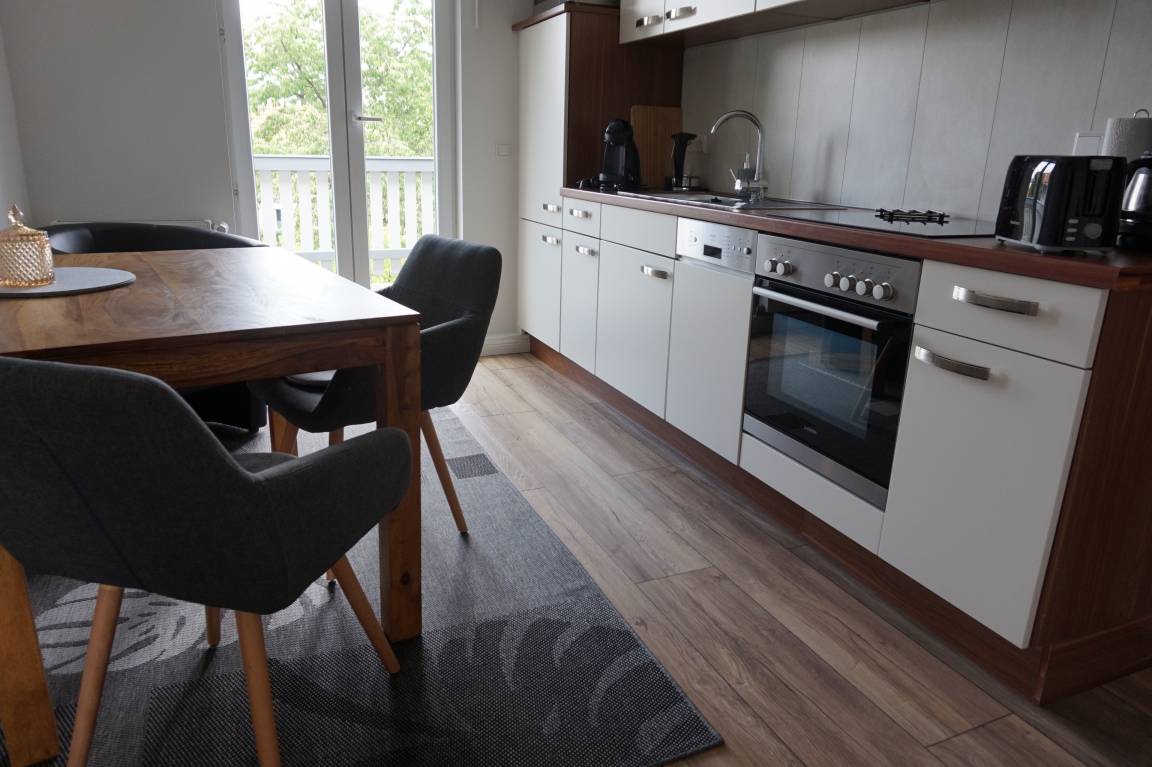 Wohnung 2 (80 qm) + Balkon (15qm) möbliert. Für 4 Personen geeignet. Aufbettung auf Anfrage und Aufpreis (Schlafsofa vorhanden).