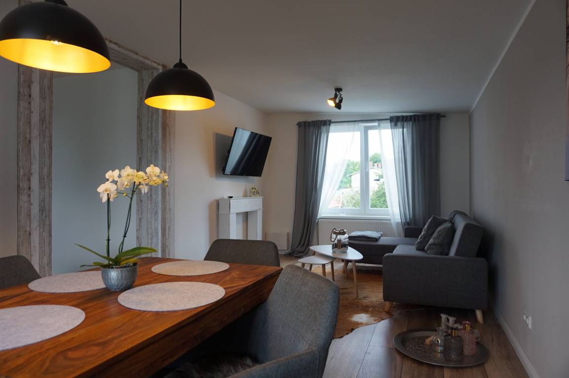 Wir bieten Ihnen ein Ferienhaus; mit Balkon oder Terrasse, Grünfläche zum spielen, verweilen und grillen. Des Weiteren sind Stellplätze direkt auf dem Grundstück verfügbar. Das Haus befindet sich in einer sehr ruhigen Lage, dennoch ist der Stadtkern innerhalb von 10 min zu erreichen.