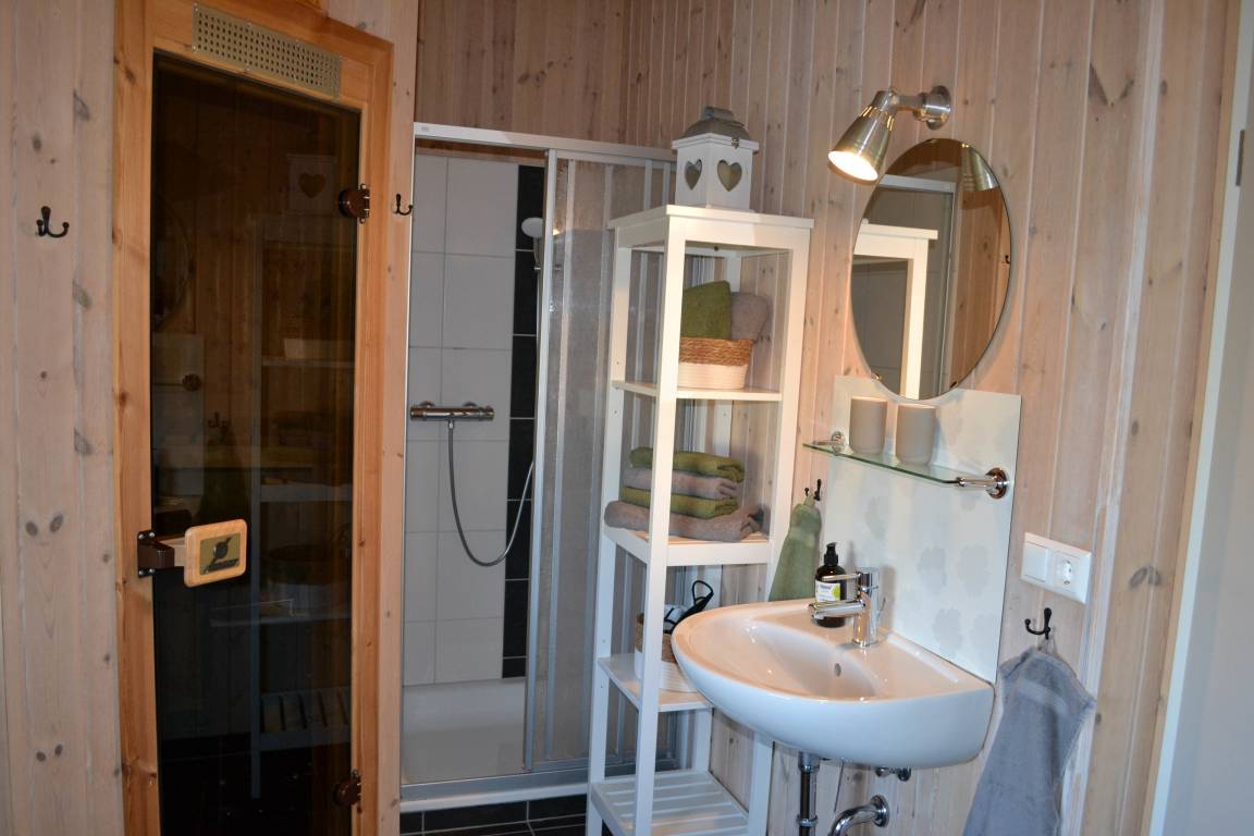 Das Ferienhaus bietet bis zu 6 Personen in drei Schlafzimmern Platz. Zwei Schlafzimmer sind mit hochwertigen Doppelbetten ausgestattet. Im dritten Schlafzimmer befinden sich zwei bequeme Einzelbetten in den Maßen 80x200cm. Eine urige Schlafnische ist von einer kleinen Treppe aus erreichbar und bietet ebenfalls Platz für bis zu 2 Personen (siehe Bilder). Ein Kinderreisebett, sowie ein Hochstuhl steht für die kleinsten Gäste kostenfrei zur Verfügung. Im gemütlichen Badezimmer erwartet Sie neben einer Dusche auch eine großzügige Eckbadewanne. Eine Sauna steht Ihnen ebenfalls zur Verfügung. Die bereitgestellte Wachmaschine und ein abschließbarer Abstellraum für Ihre Fahrräder o.ä. runden Ihren Urlaubskomfort ab.