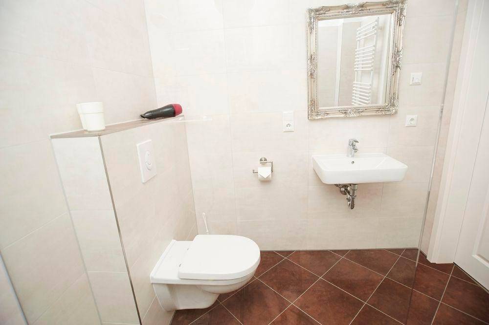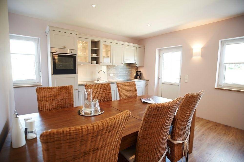 Insgesamt vermieten wir zwei Doppelzimmer mit jeweils Dusche, WC und Fön. Alle Räume sind barrierefrei und Rollstuhlfreundlich. Für beide DZ steht eine gemütliche Wohnküche zur Verfügung. Die Markenküche ist sehr gut ausgestattet mit Backofen, Spülmaschine, Kühlschrank und Ceranfeld von Miele und Neff. Kaffeemaschine und Tee, sowie Wasserkocher und Toaster vervollständigen die Küche.