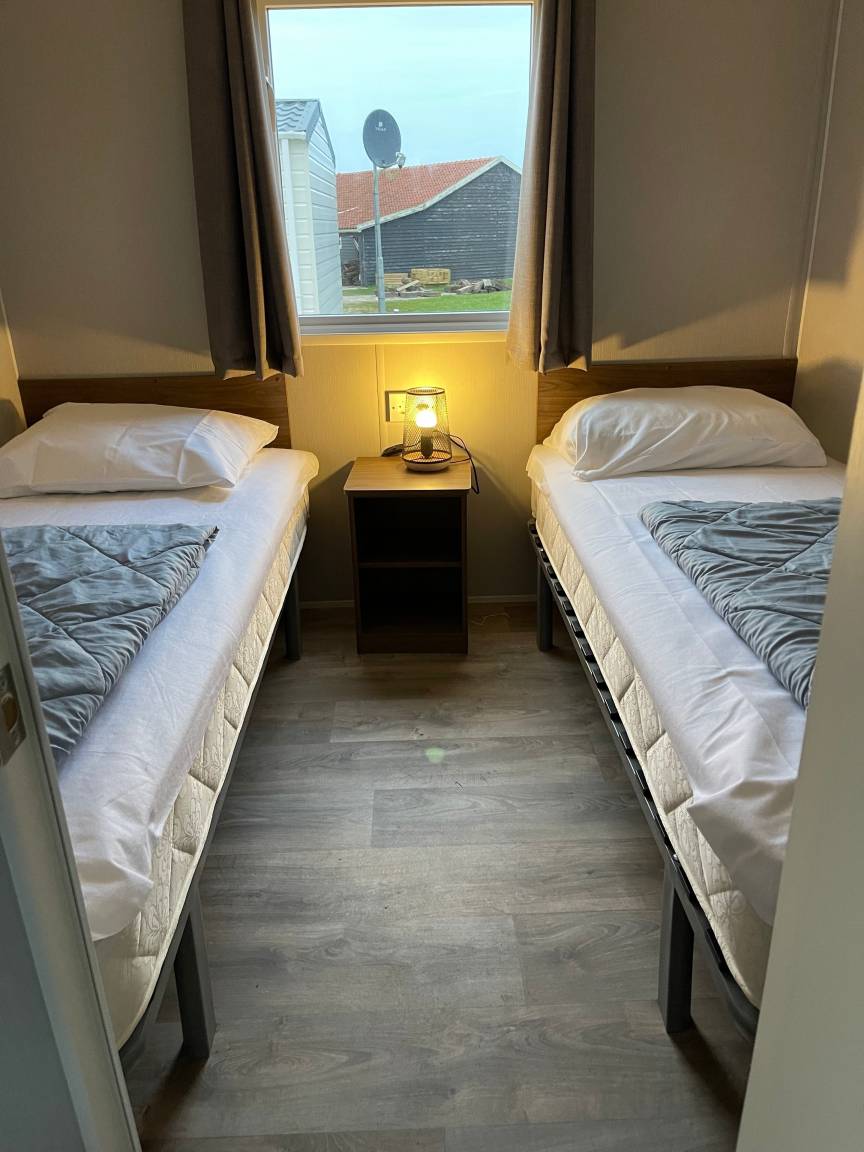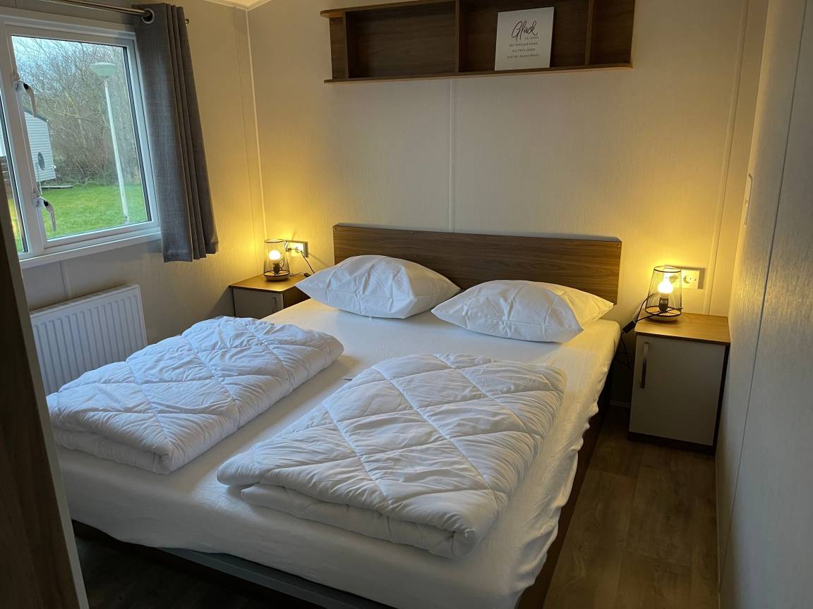 Der Campingplatz liegt direkt am Wattenmeer. Hier stehen 100 Ferienhäuser, es ist ein sehr ruhiger Campingplatz.