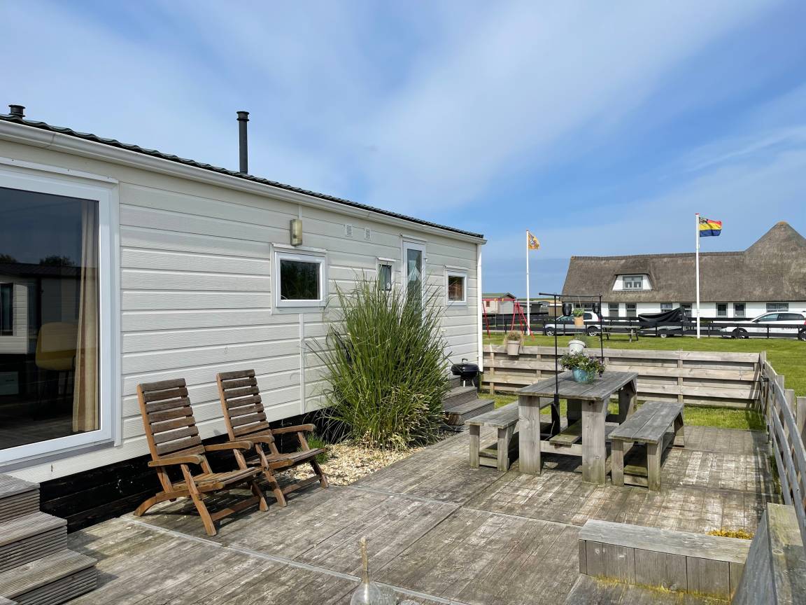 Der Campingplatz liegt direkt am Wattenmeer. Hier stehen 100 Ferienhäuser, zwei Hunde sind erlaubt!