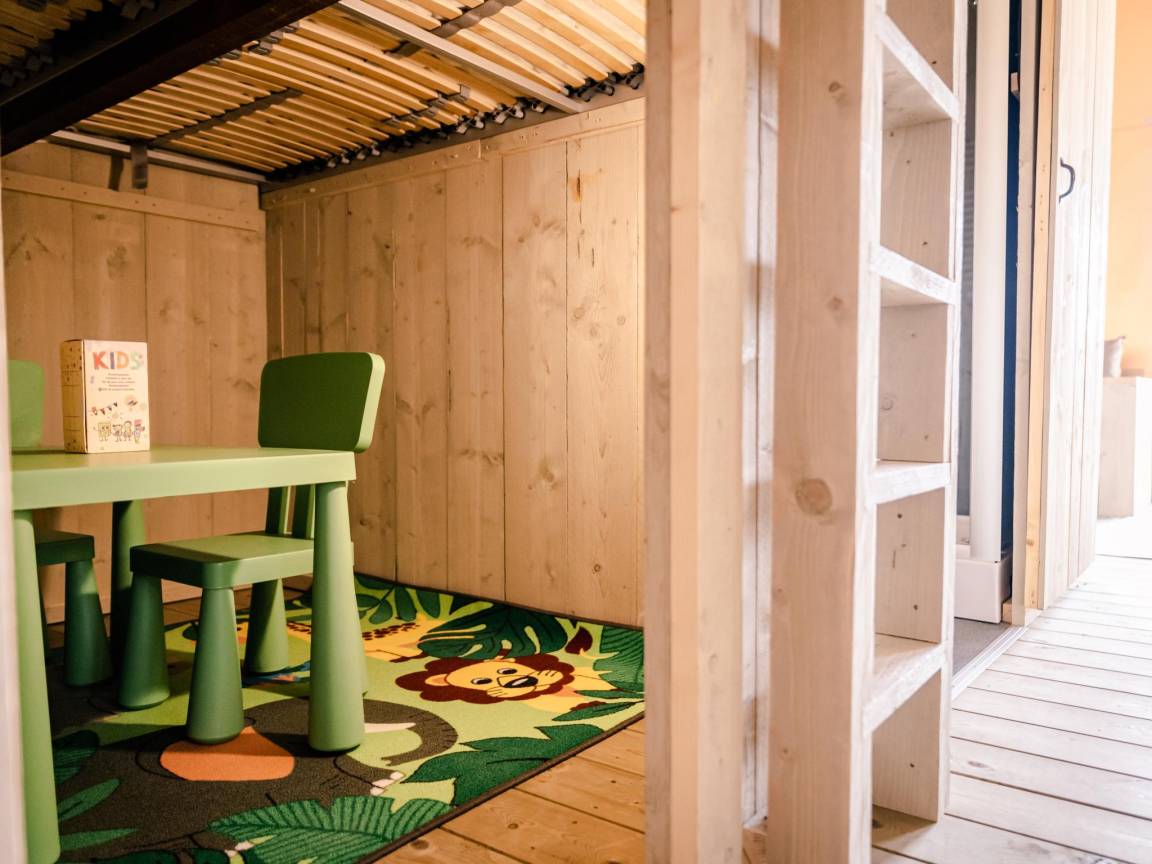Hausbeschreibung : Diese Glampinglodges bieten das freie und abenteuerliche Gefühl von Zelten, aber auch den Luxus und den Komfort eines Ferienhaus. Und diese Lodges befinden sich auf einem sehr schönen Familiencampingplatz in Laufnähe zum Wattenmeer und zum Amstelsee. Der Camping bietet ein gutes Restaurant, Animation für Kinder, mehrere Spielplätze, eine Eisdiele und einen Brötchenservice. Ein markierter Badestrand ist zu Fuß zu erreichen. Sie können hier auch schwimmen oder Windsurfen gehen. Was ein toller Ort!