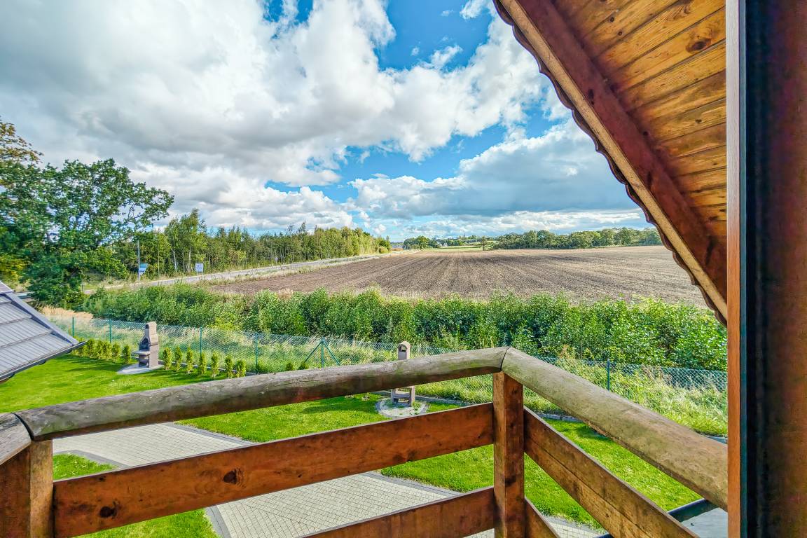 PL 77.1 Ferienhaus 2-6 Pers.: Schönes 3-Zimmerhaus mit Wohlfühlfaktor auf 62 qm Wohnfläche über 2 Etagen. Parterre: Wohn-/Essraum mit Sofa (Ausziehcouch 2 Pers.), Holzbalkendecke, Sat-TV (deutsche Programme), Internet (Wlan), Esstisch, Küchenzeile (4 Flammen Gaskochfeld, Dunstabzug). Bad/WC. Dachgeschoss: Doppelzimmer mit kleinem Balkon, herrlichem Ausblick auf die umliegenden Felder. Zweibettzimmer. Überdachte Terrasse mit Sitzmöbeln, davor Rasenfläche, gemauerter Grill.