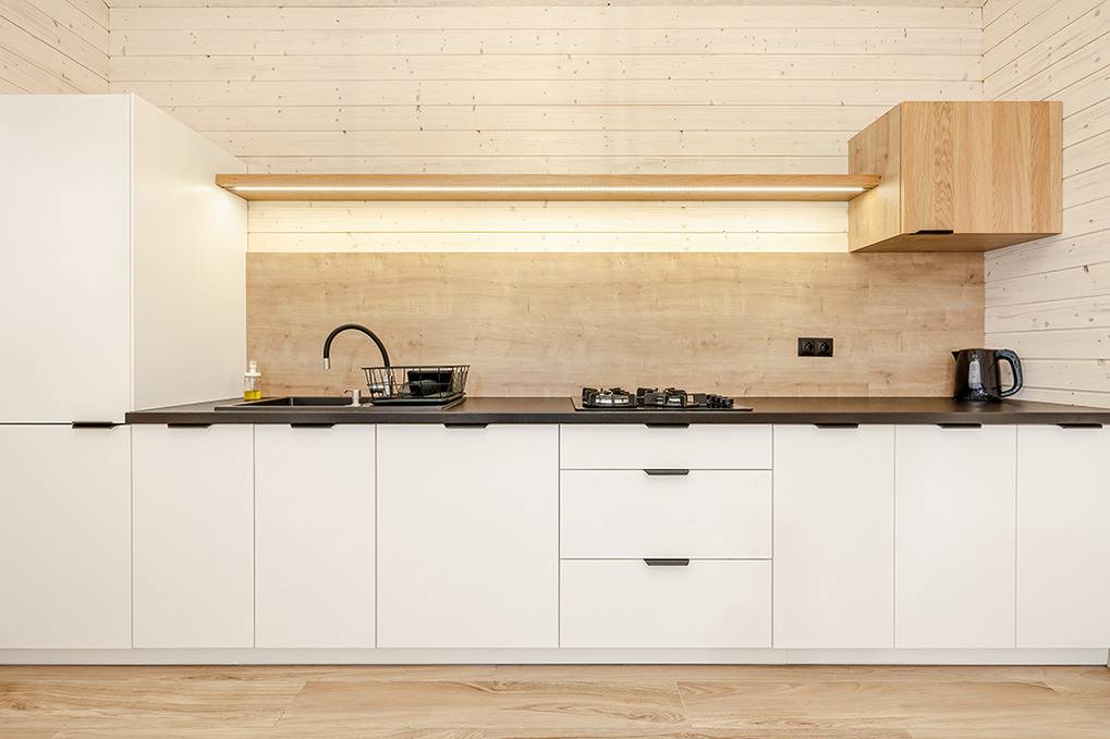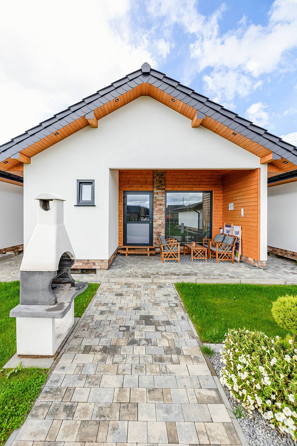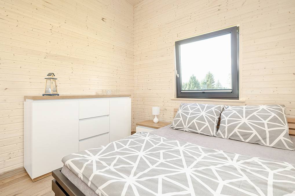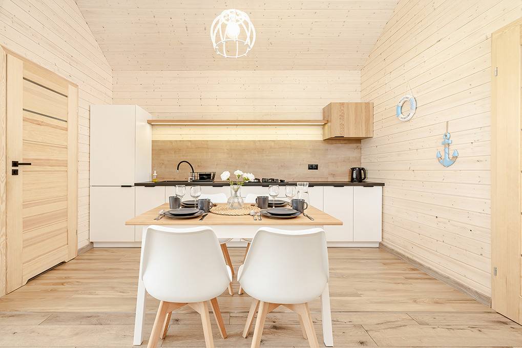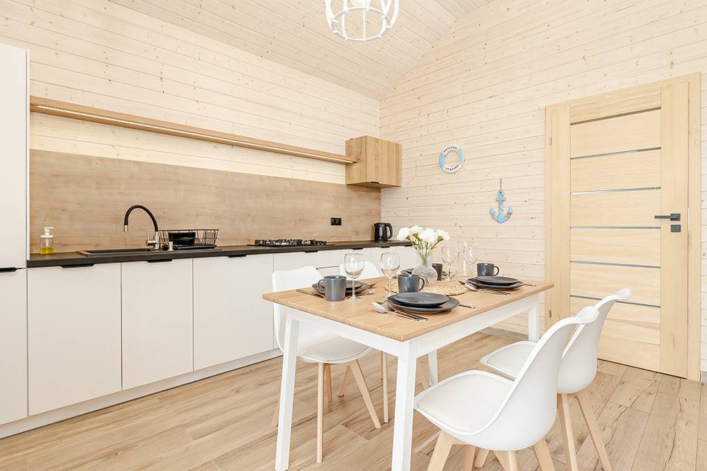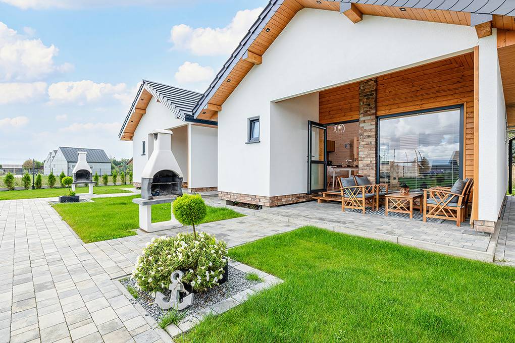 Skandinivische Ferienhäuser mit freundlicher Einrichtung, 2022 erbaut. Heizung mit E-Radiatoren, Warmwasser über E-Boiler (60 l). Klimaanlage mit Heizfunktion im Wohnzimmer. Überdachte Terrasse mit Sitzmöbeln, gemauertem Grill. 1 Pkw-Stellplatz/Haus auf dem umzäunten Grundstück.