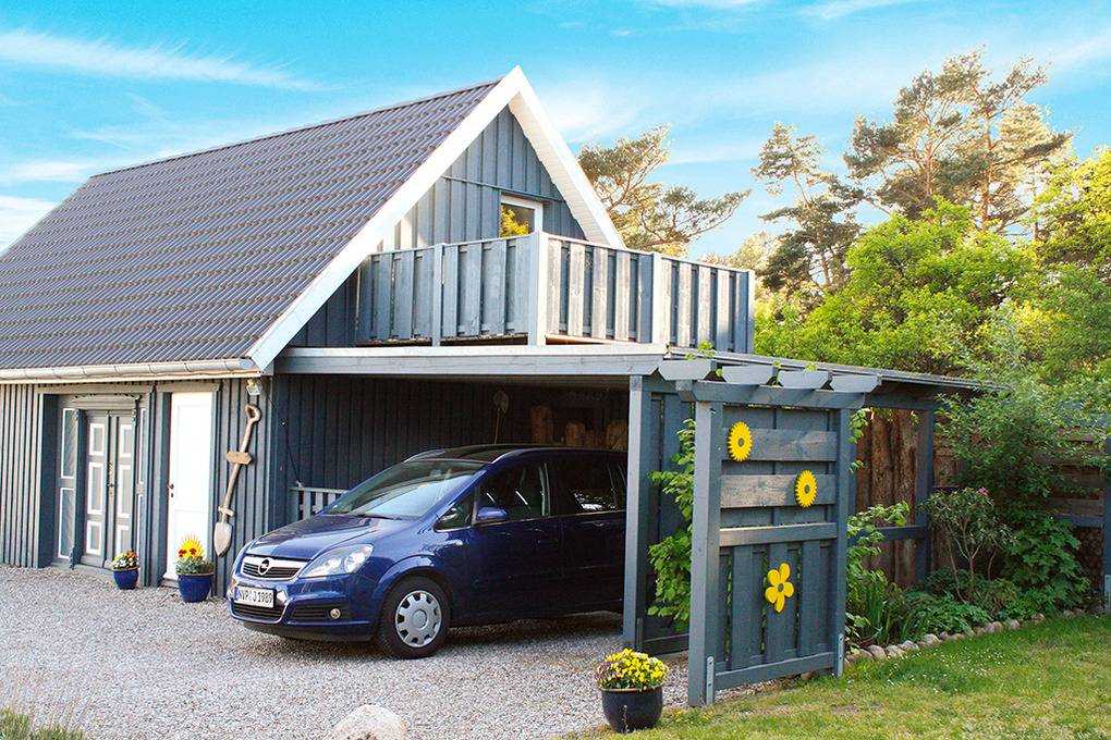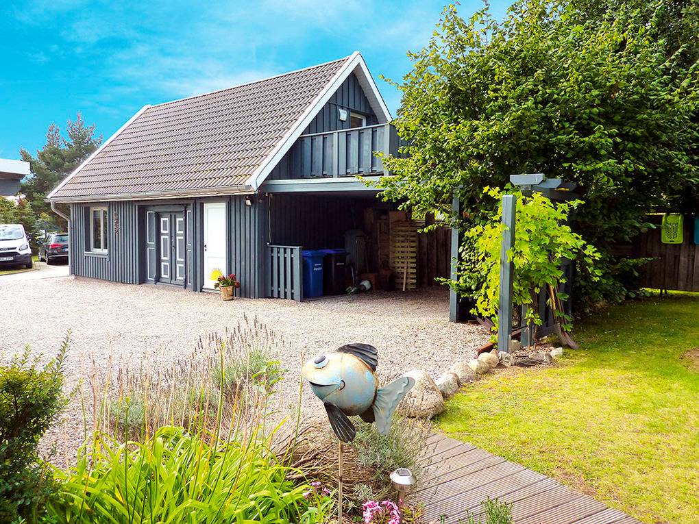 Haus: Schönes Holzhaus im skandinavischen Stil mit einer Ferienwohnung. Moderne, geschmackvolle Einrichtung. Fußbodenheizung. Schöner Balkon mit Sitzmöbeln. Spielplatz im Garten des Vermieters. Außensitzplatz mit Grill. 1 Pkw-Stellplatz am Haus.