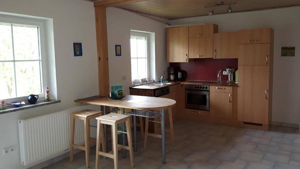 Unsere Ferienwohnungen sind Selbstversorger-Wohnungen. Lebensmittel können z. B. im nahe gelegenen Schönau oder Todtnau gekauft werden. Der Essbereich direkt an der Küche ist mit mit einer Esstheke und Barhockern versehen. Weiterhin kann auf Wunsch und kostenlos auch ein Kinder-Hochstuhl ergänzt werden. Wenn Sie gerne grillen möchten, steht Ihnen am Haus ein hübscher Grillplatz mit Holzstamm-Bänken zur Verfügung.