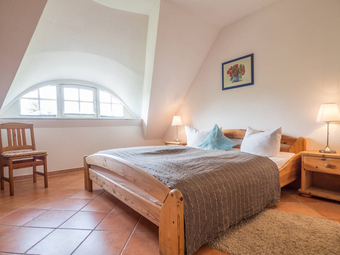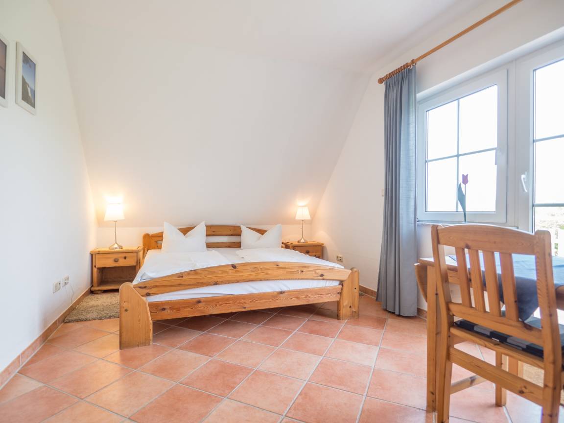 Von dem kleinen Zimmer, wie auch dem nebenanliegenden Schlafzimmer gelangen Sie auf den Südwest-Balkon mit Blick auf die angrenzenden Wiesen, wo Sie grasende Galloway Rinder, Schafe und auch Pferde beobachten können. Nicht weit dahinter befindet sich der Wieker Bodden.
