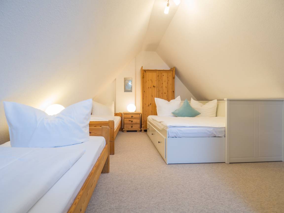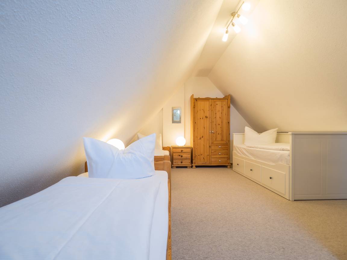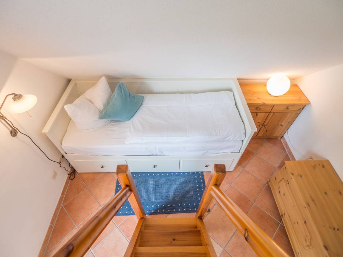 Eine weitere Schlafmöglichkeit für 1 Person befindet sich in einem kleinen Zimmer, über dieses gelangt Sie auch über eine Holztreppe zum gemütlichen Spitzboden, wo sich 2 weitere Einzelbetten und ein ausziehbares Bett für 2 Personen befinden.
