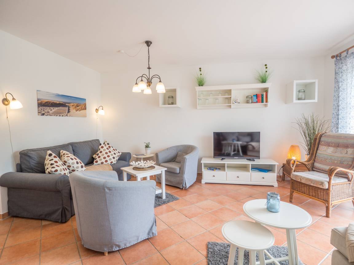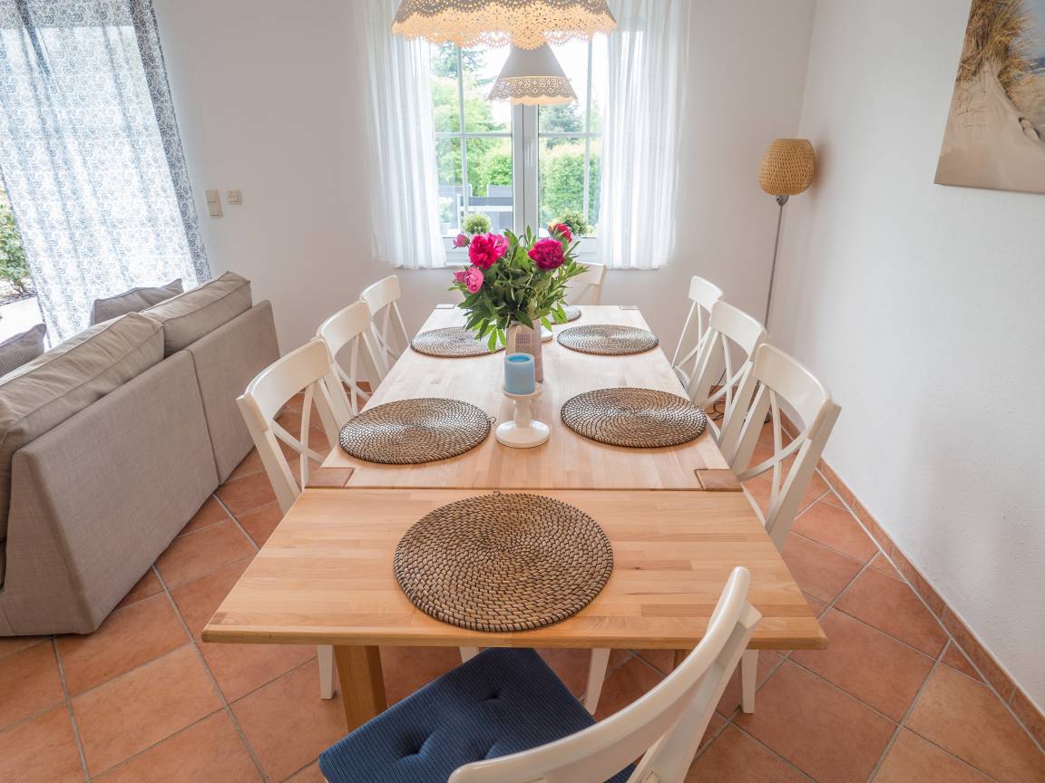 Die Doppelhaushälfte Große Freiheit (für bis zu 9 Personen) betreten Sie über den separaten Eingang im Erdgeschoß. Von dort aus gelangen Sie in die Küche, Gäste - WC, über eine Treppe ins Obergeschoß, wie auch in den besonders lichtdurchfluteten Wohn-/Essbereich, mit einer gemütlichen Couch (abends kann diese schnell zu einer Schlafstätte umfunktioniert werden), einer Recamiere zum Entspannen, bequeme Sessel und einem Essbereich mit Massivholz-Esstisch.