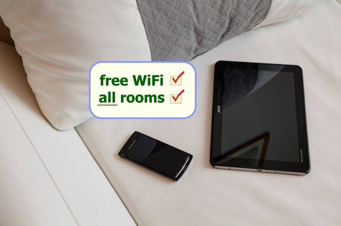 WiFi gibt es kostenlos und mit starkem Signal in allen Räumen. TV mit Kabelanschluss ist ebenfalls vorhanden.