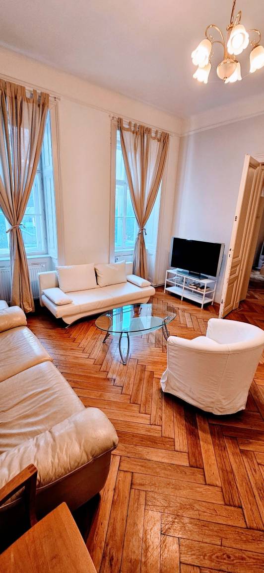 Dieses große Apartment liegt in einer hübschen und grünen Alleestraße in einer gutbürgerlichen Gegend im Zentrum Wiens. Im sog. Servitenviertel -- der Name stammt vom dem nahegelegenen Kloster ab -- fühlen Sie das angenehme Flair eines typischen bürgerlichen Jahrhunderwendehauses.