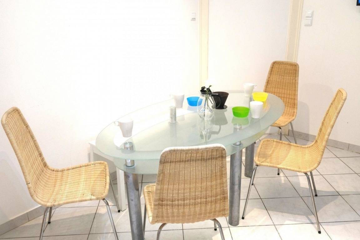 - komplett ausgestattete Küche mit Kühlschrank, Tiefkühler, Herd, Mikrowelle, Kühlschrank, Wasserkocher, ausreichend Besteck und Geschirr.