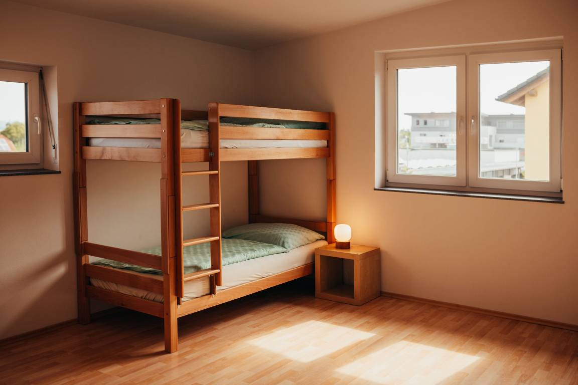 Schlafzimmer 2: Stockbett (90×200 cm) – ideal für Kinder