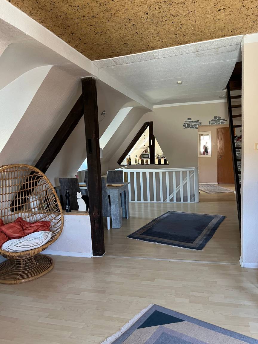 Unsere helle, liebevoll eingerichtete Ferienwohnung im Dachgeschoss hat eine Wohnfläche von 90qm und bietet Platz für bis zu 5 Personen!