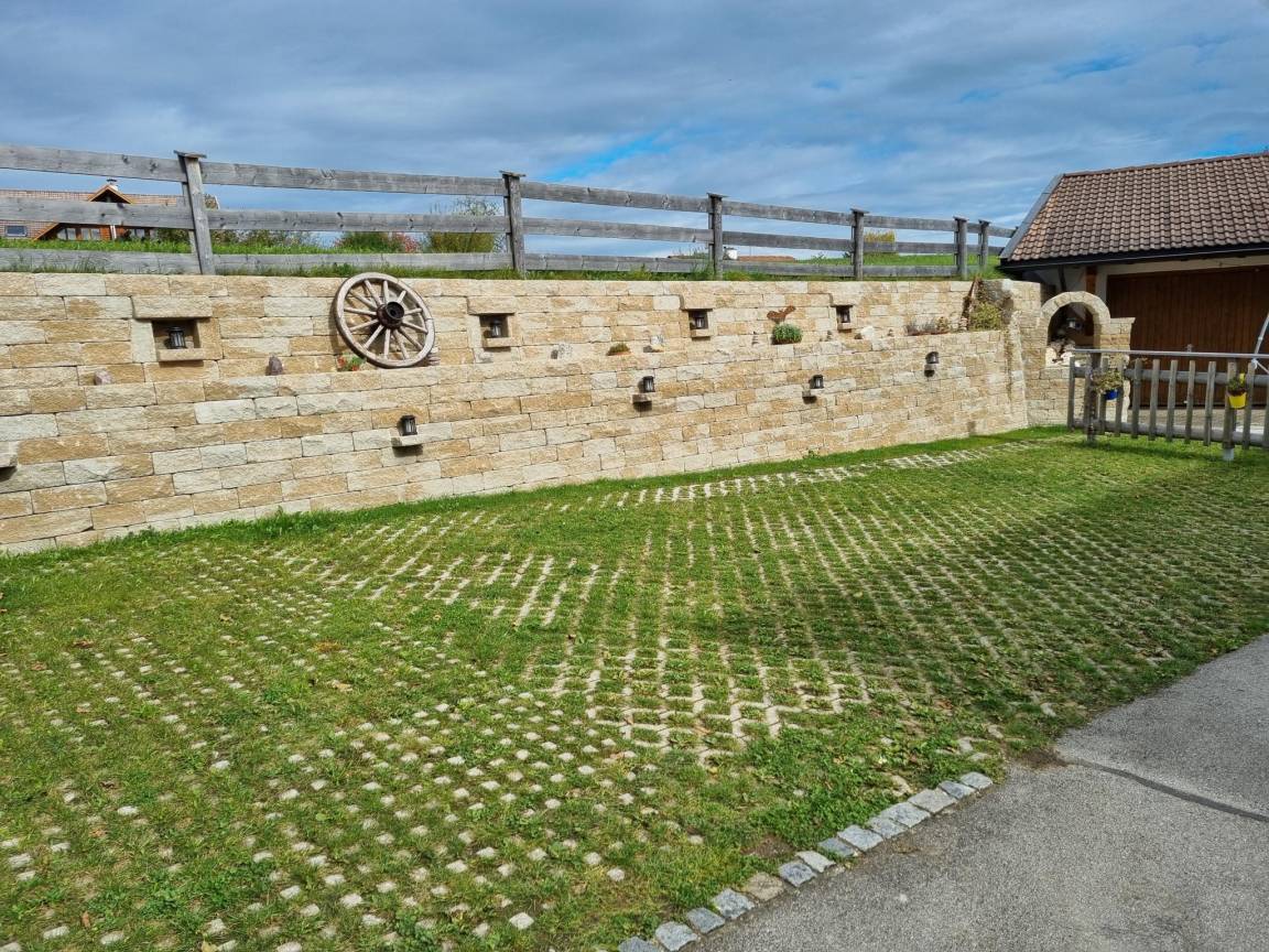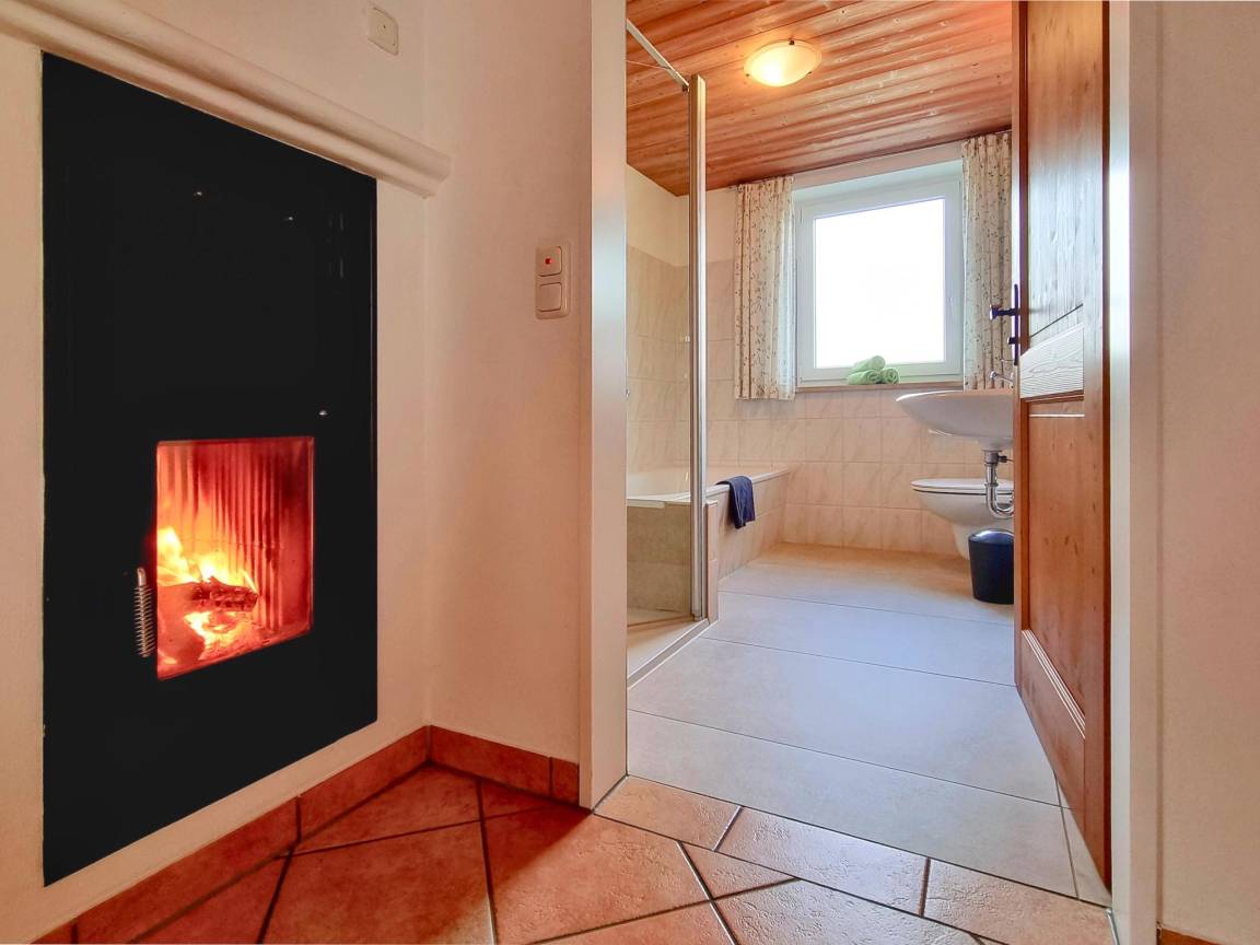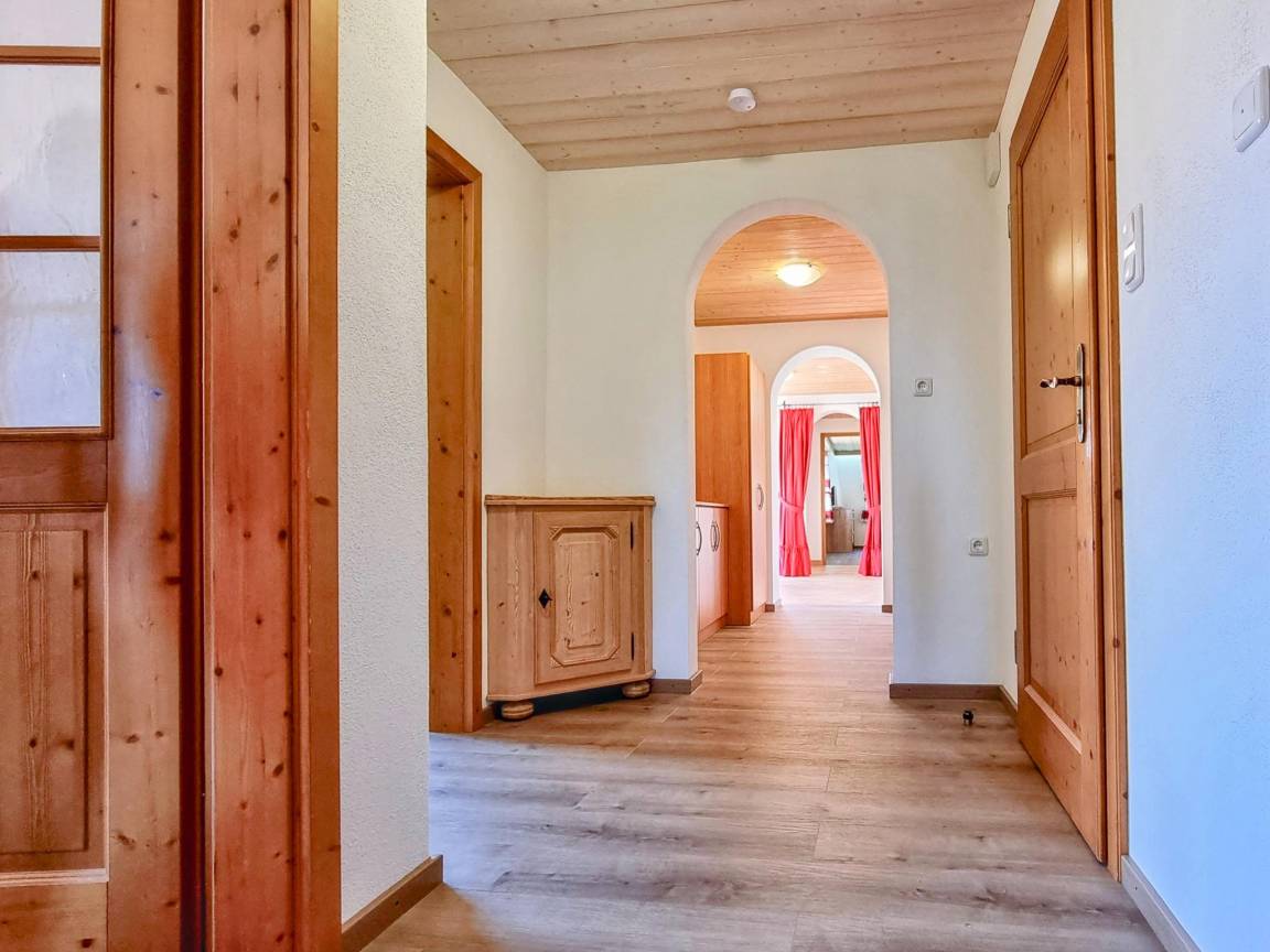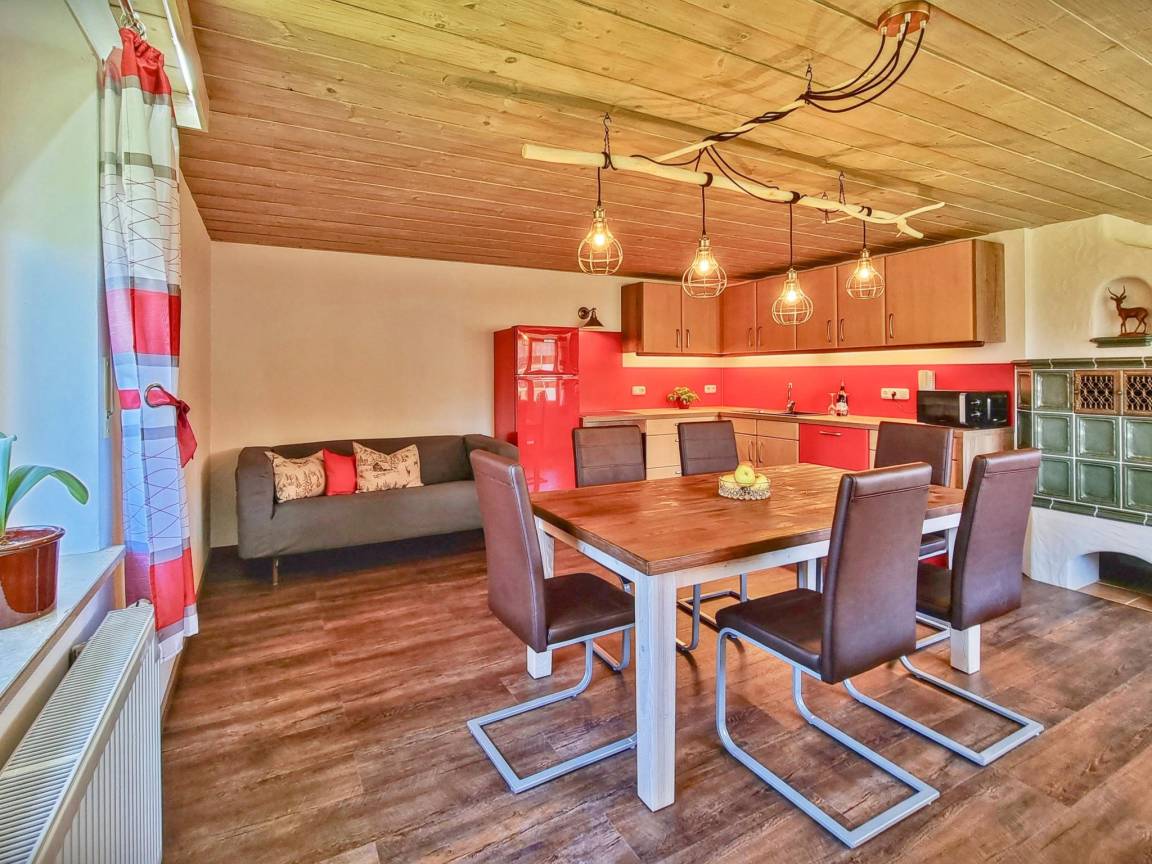 Hausbeschreibung : Die lichtdurchflutete Wohnung verfügt über eine hochwertige Ausstattung mit warmen Farben und liebevollen Details. Ein besonderes Highlight sind der Wintergarten und der traditionelle Kachelofen, der an kühlen Tagen für behagliche Wärme sorgt. Zwei teilweise überdachte Terrassen laden zum Verweilen im Freien ein – ob zum Frühstück oder zum Ausklang des Tages mit Blick auf die imposanten Ammergauer Alpen. Ein kleiner, gepflegter Garten und ein großer Grill stehen ebenfalls zur Verfügung