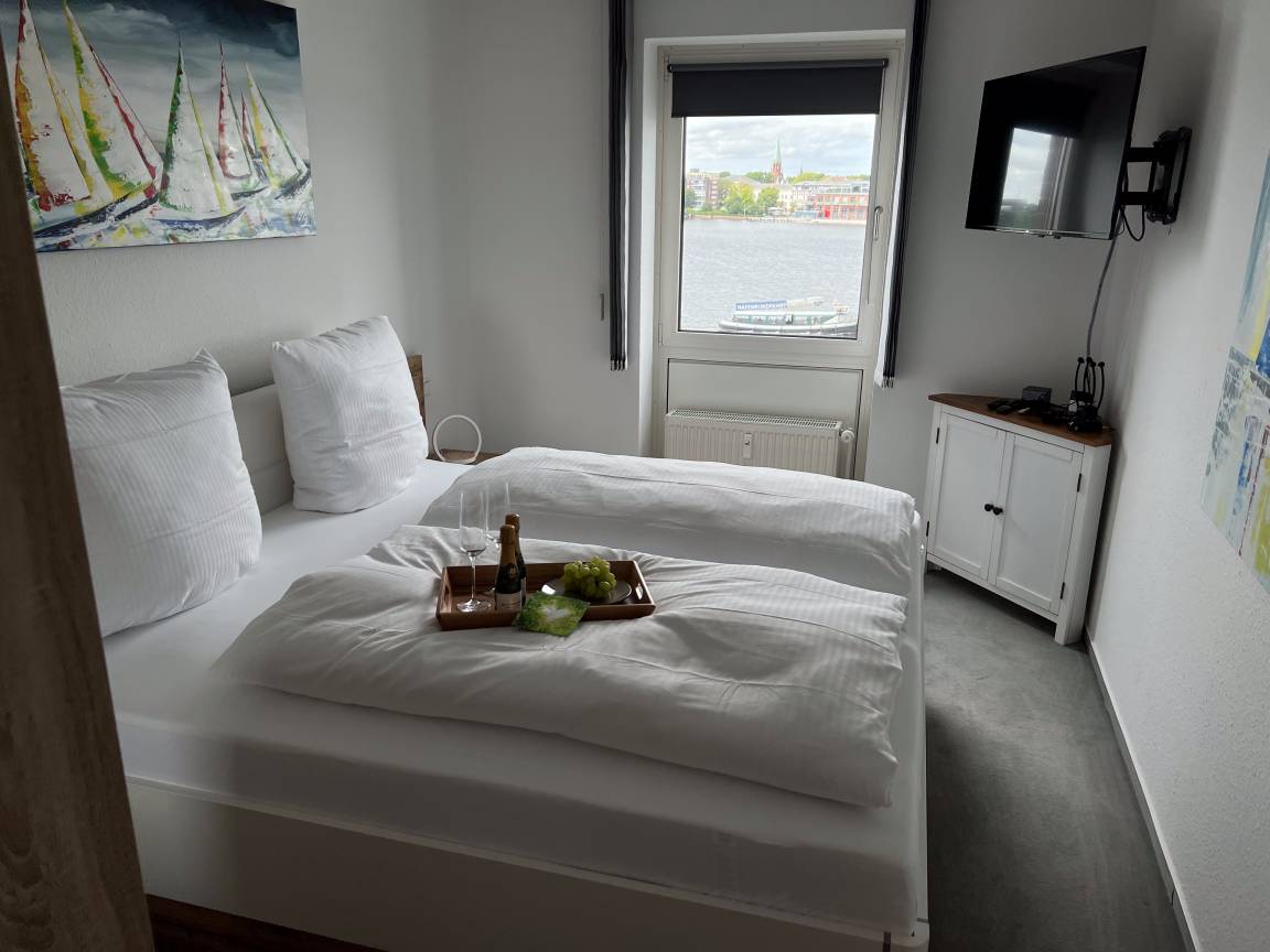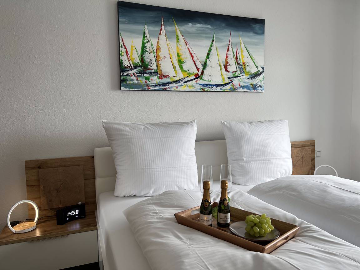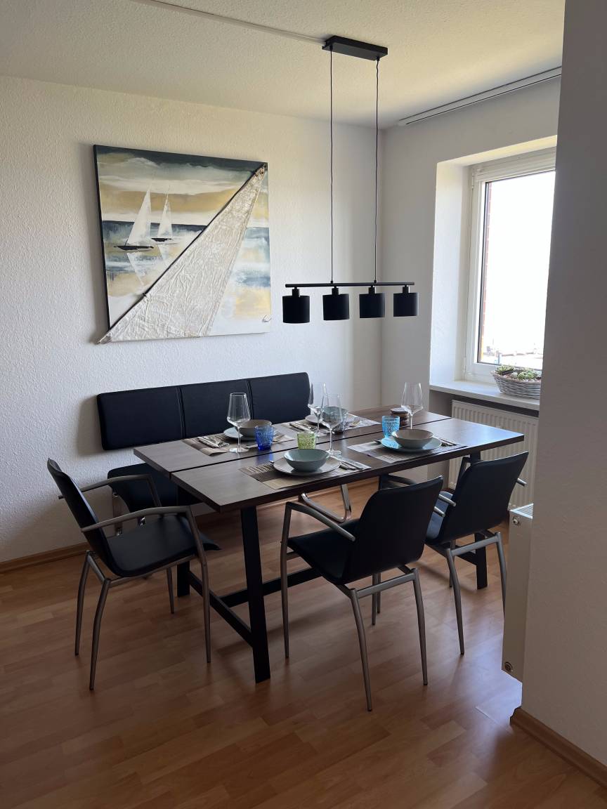 Exklusiv ausgestattete 3 Zimmer Ferienwohnung mit 4 Betten in 2 Schlafzimmern für 1-4 Personen auf 78 qm in der 5. Etage gelegen. Die Wohnung bietet eine Ausstattung für schwerhörige Menschen.
