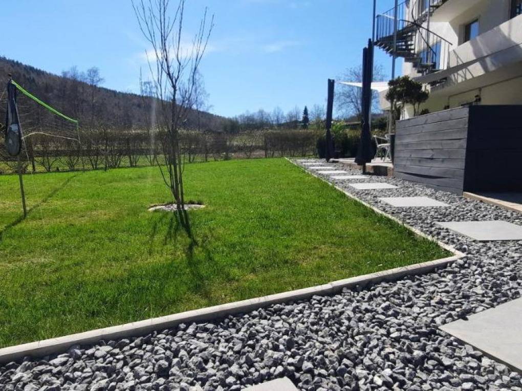 Auf der Terrasse haben sie einen schönen Ausblick auf unseren Garten und Berge
