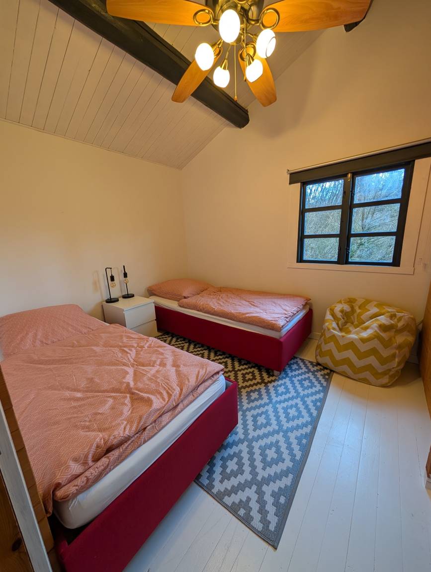 Tilli's Haus umfasst 2 Schlafzimmer, eins mit 2 einzelnen Betten und eins mit einem Doppelbett, ein Wohnzimmer mit einem Flachbild Smart TV und eine vollausgestattete Küche. In der Küche befindet sich ein Geschirrspüler, ein Kühlschrank mit Gefrierschrank, sowie ein Backofen, ein Elektro Grill, ein Wasserkocher, eine Filter Kaffeemaschine und eine Kapsel Kaffeemaschine. Zum Haus gehört ein kleiner ungezäumter Garten mit einem Schuppen wo sie ggf. Ihre Fahrräder abschließen können, sowie eine Terrasse mit Grill und Sitzmöglichkeiten.