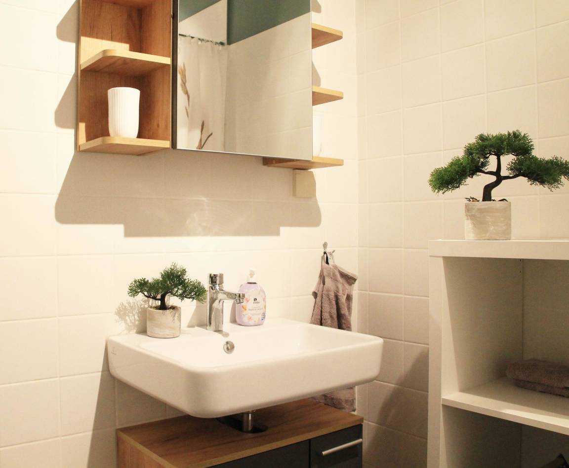 In der Küche befindet sich ein Kühlschrank, mit kleinem Eisfach, zwei Kochplatten, Kaffemaschine, Wasserkocher, Toaster und sämtliches Geschirr. Die Wohnung besitzt ein separates Schlafzimmer mit einem Boxspringbett (140x200cm) und einen abgetrennten Schlafbereich im Wohnraum mit einem Boxspringbett (160x200cm).