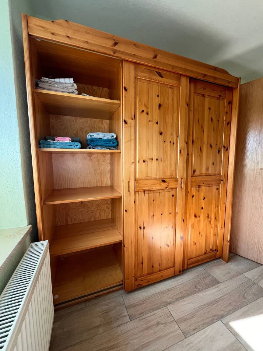 Im Schlafzimmer befindet sich das große Doppelbett (1,80 x 2,00 m) und der geräumige Kleiderschrank bietet viel Platz für Ihre Urlaubsgarderobe.