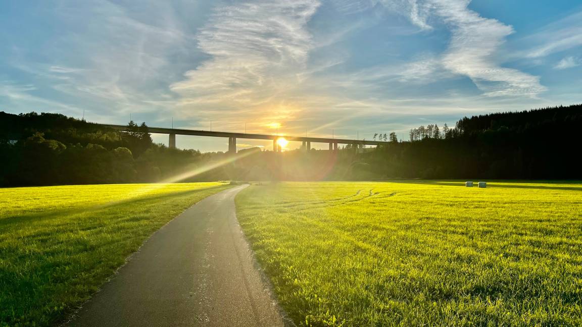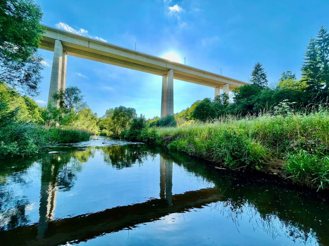 Von der Terrasse aus haben Sie einen einzigartigen Blick auf das breite Tal der Our mit dem idyllischen Grenzfluss, Waldhängen, Wiesen und der imposanten Ourtal-Brücke. Durch ihre Höhe von fast 90 Metern und dem geringen Verkehrsaufkommen wird Ihr Naturgenuss nicht geschmälert.