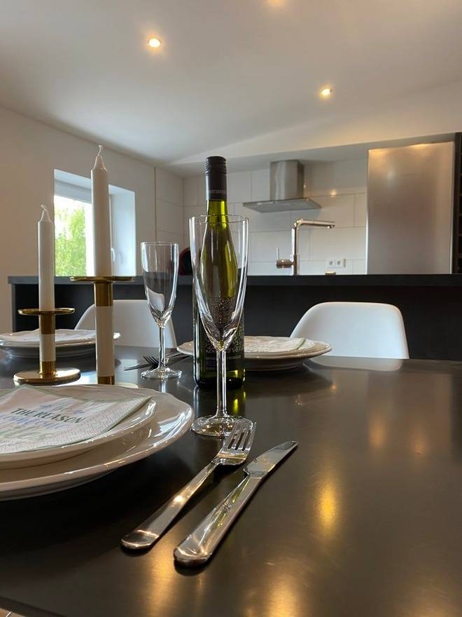 - Küche ausgestattet mit Geschirrspüler, Backofen, Ceranfeld, Kühlschrank, Kaffeemaschine, Wasserkocher, Geschirr, Besteck, Gläser uvm.