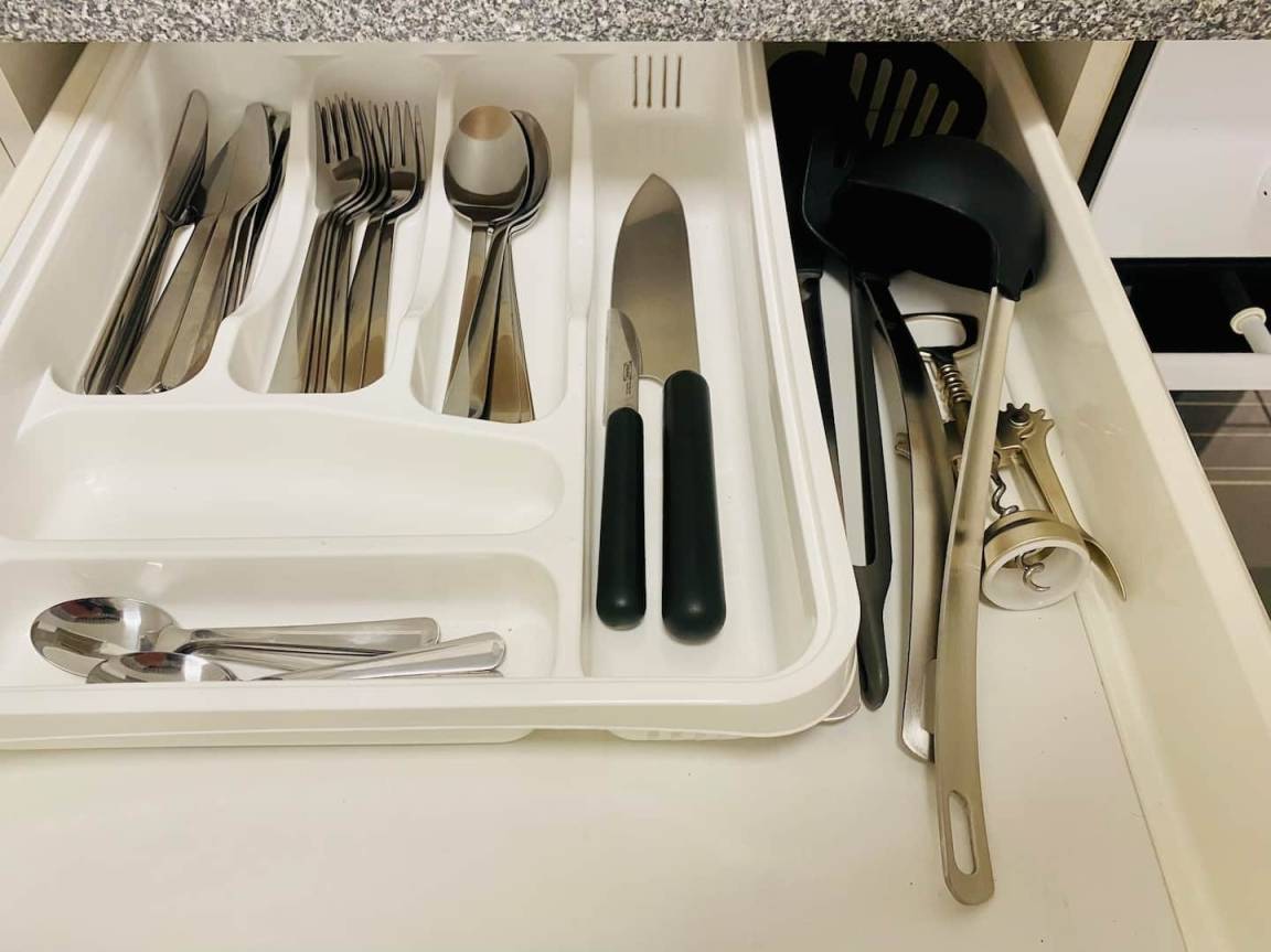 - Küche ausgestattet mit Ceranfeld, Kühlschrank, Nespresso-Kaffeemaschine, Toaster, Geschirr, Besteck, Gläser, Backofen uvm.