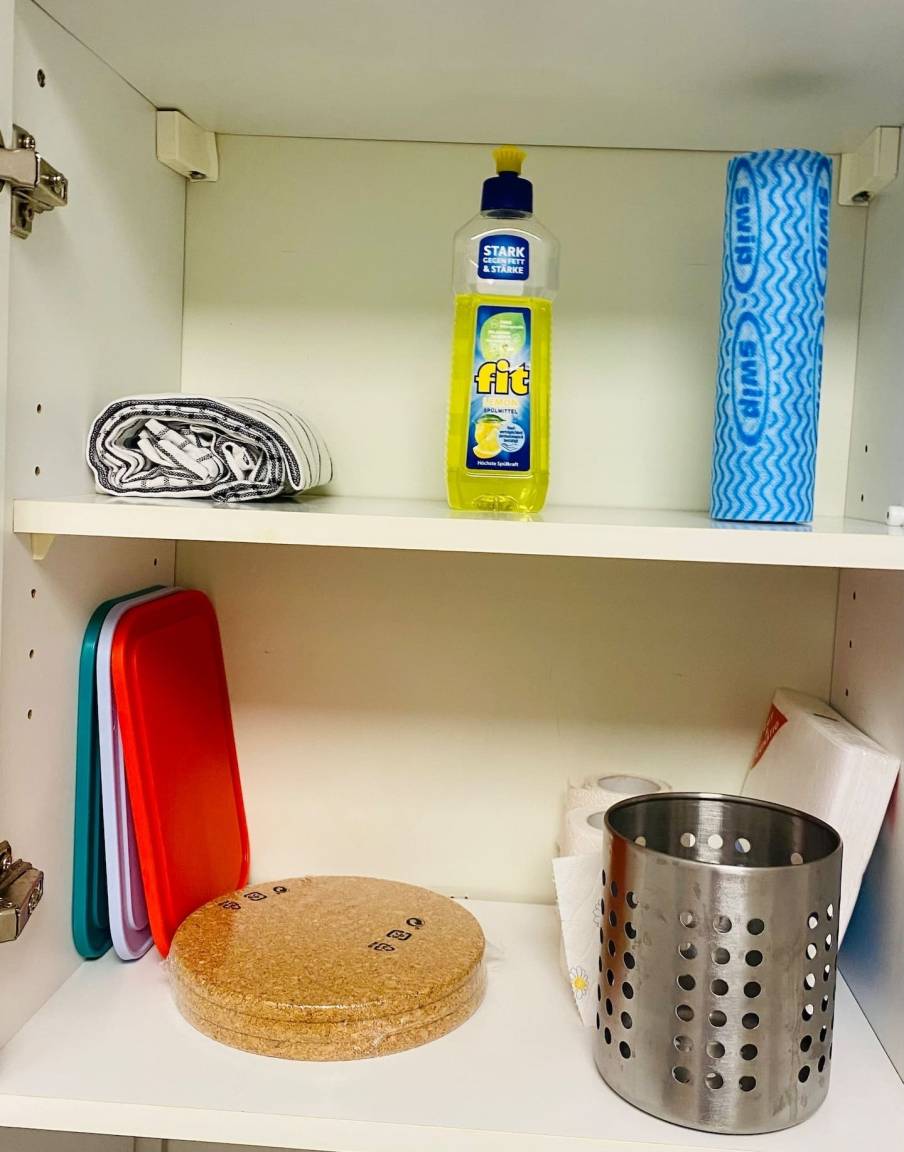Auf knapp 40qm bietet es ein helles Wohn- und Schlafzimmer (Bett, Sofa, Kommode, TV) nach Westen mit zwei großen Altbaufenstern, ein Arbeitszimmer mit Schreibtisch [&] Bücherregal nach Osten mit Blick in einen grünen Innenhof, ein modernes Bad (Dusche, WC, Waschbecken, Waschmaschine und Wäscheständer) und eine voll ausgestattete Küche mit Spüle, Kühlschrank, Ofen, Ceranfeld-Herd und Essecke inkl. Töpfe, Teller, Geschirr, Besteck, Wasserkocher, Toaster, Espressomaschine, etc..