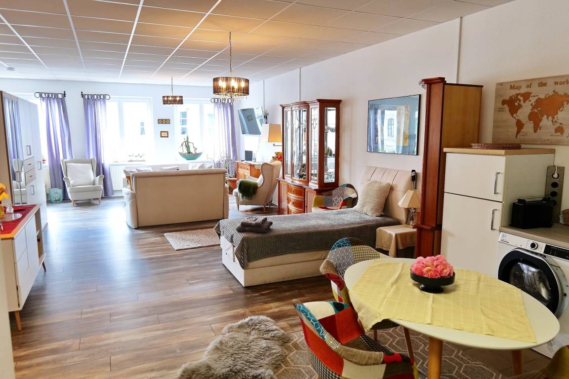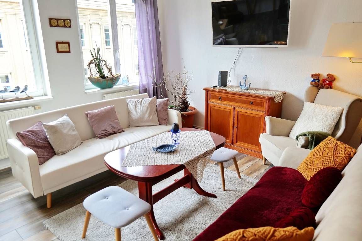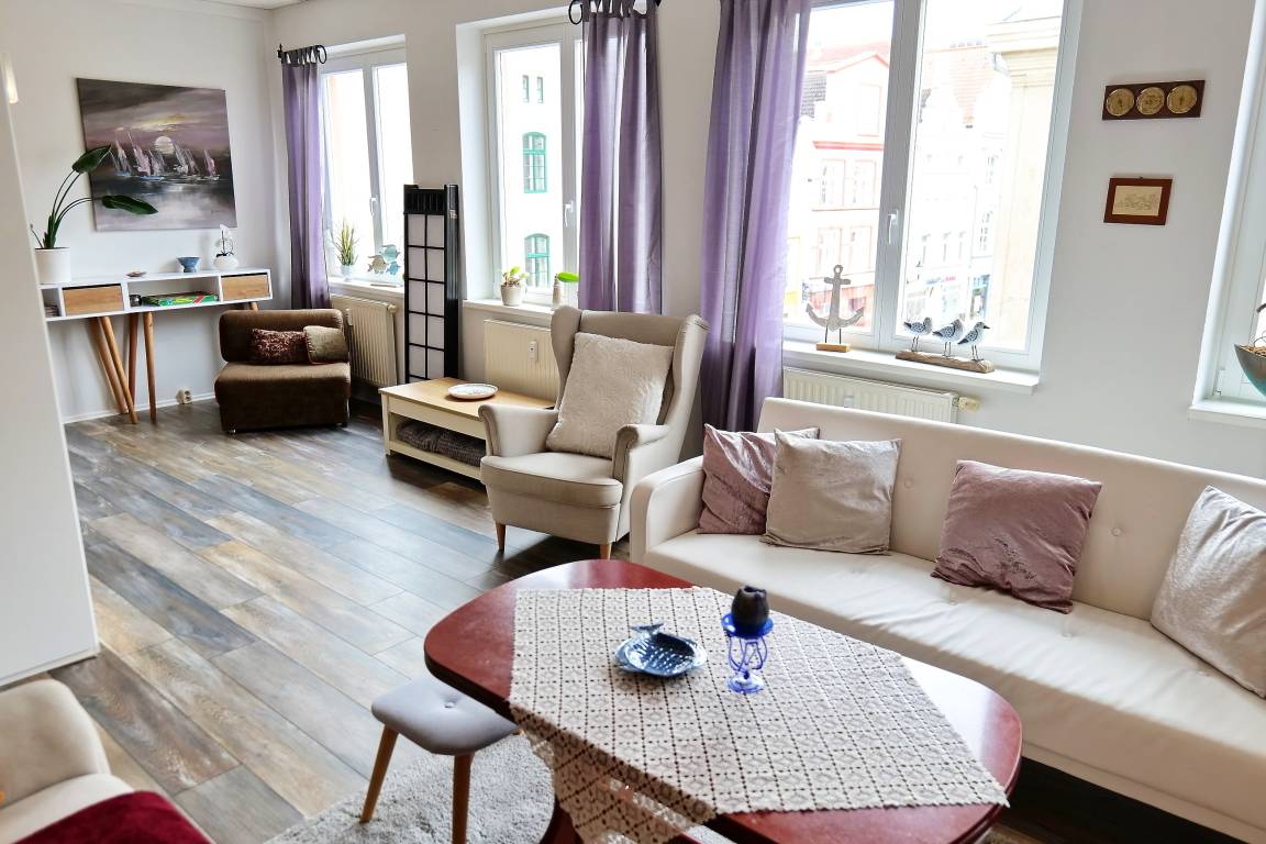 Stilvolles Appartement für 2-3 Personen, direkt in der Flaniermeile von Wismar, in der Wismarer Altstadt, nur wenige Meter zum Wismarer Marktplatz mit seinen vielen Geschäften, Cafés und Restaurants oder zum Wismarer Hafen. In unmittelbarer Nähe zur Ferienwohnung laden Sie gemütliche Restaurants, Eiscafés und Bars zum Verweilen ein. Wismar und seine historische Altstadt sind UNESCO-Weltkulturerbe-Stadt und Heimstätte der bekannten Fernsehproduktion "Soko Wismar". Zahlreiche Sehenswürdigkeiten in der Altstadt gibt es für Sie erkunden.