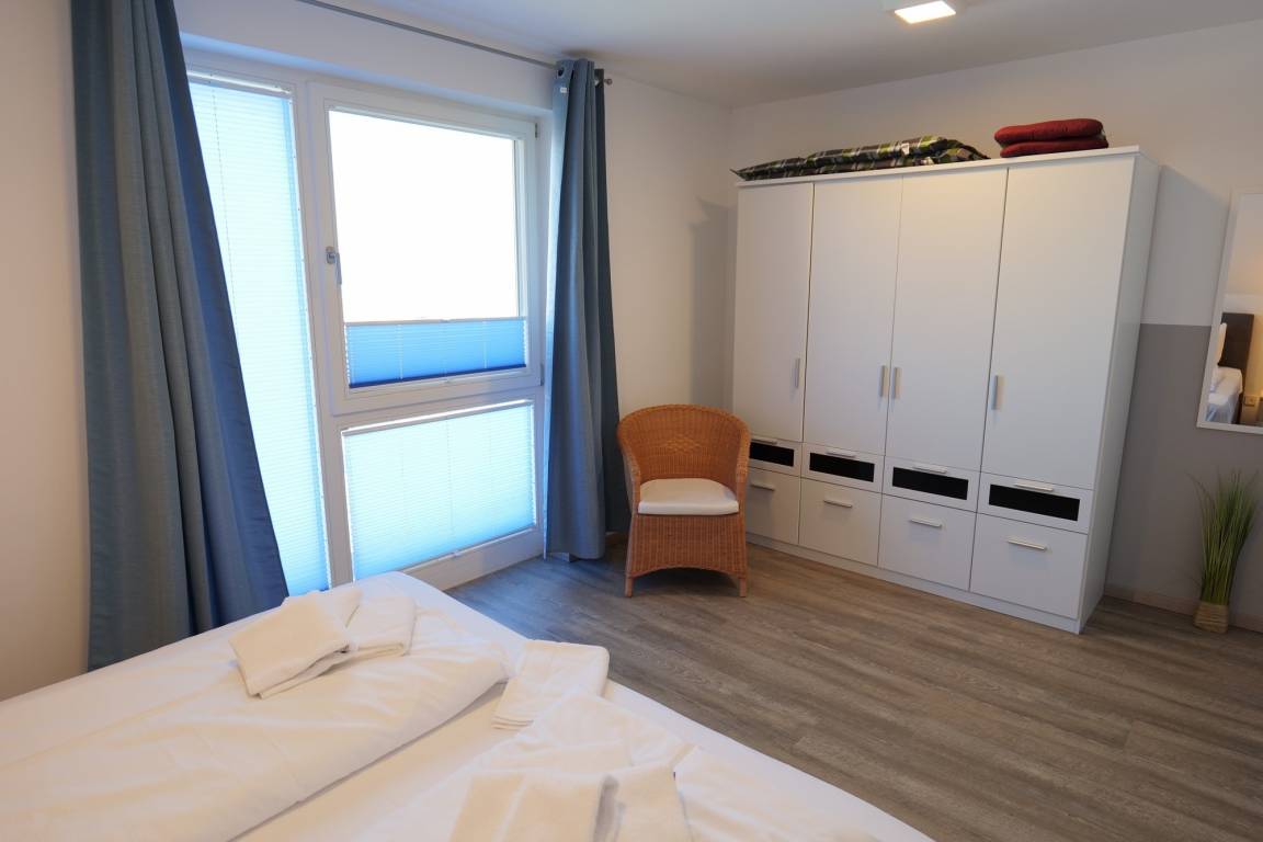- 1. Schlafzimmer mit Boxspring-Doppelbett (1,80 x 2,00 Meter) und großen Kleiderschrank