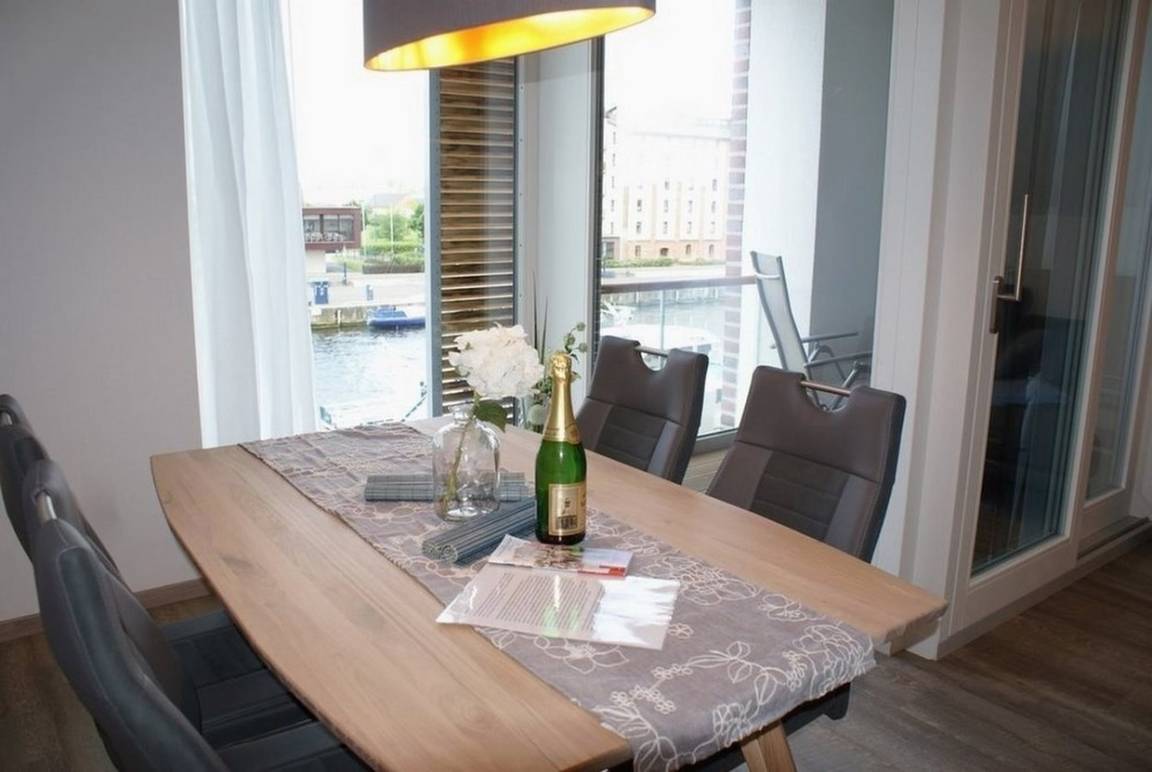 Das helle lichtdurchflutete Wohnzimmer mit großer Couch, moderner offener Küche, gemütlicher Essecke und Zugang zum Hafenblick-Balkon lädt zum Wohlfühlen ein. Im stylischen Badezimmer stehen Ihnen eine Dusche, WC und ein Spiegelschrank mit großer Ablage zur Verfügung. Genießen Ihr Frühstück auf dem Balkon mit Blick auf die Hafenpromenade und die Wismarer Bucht.