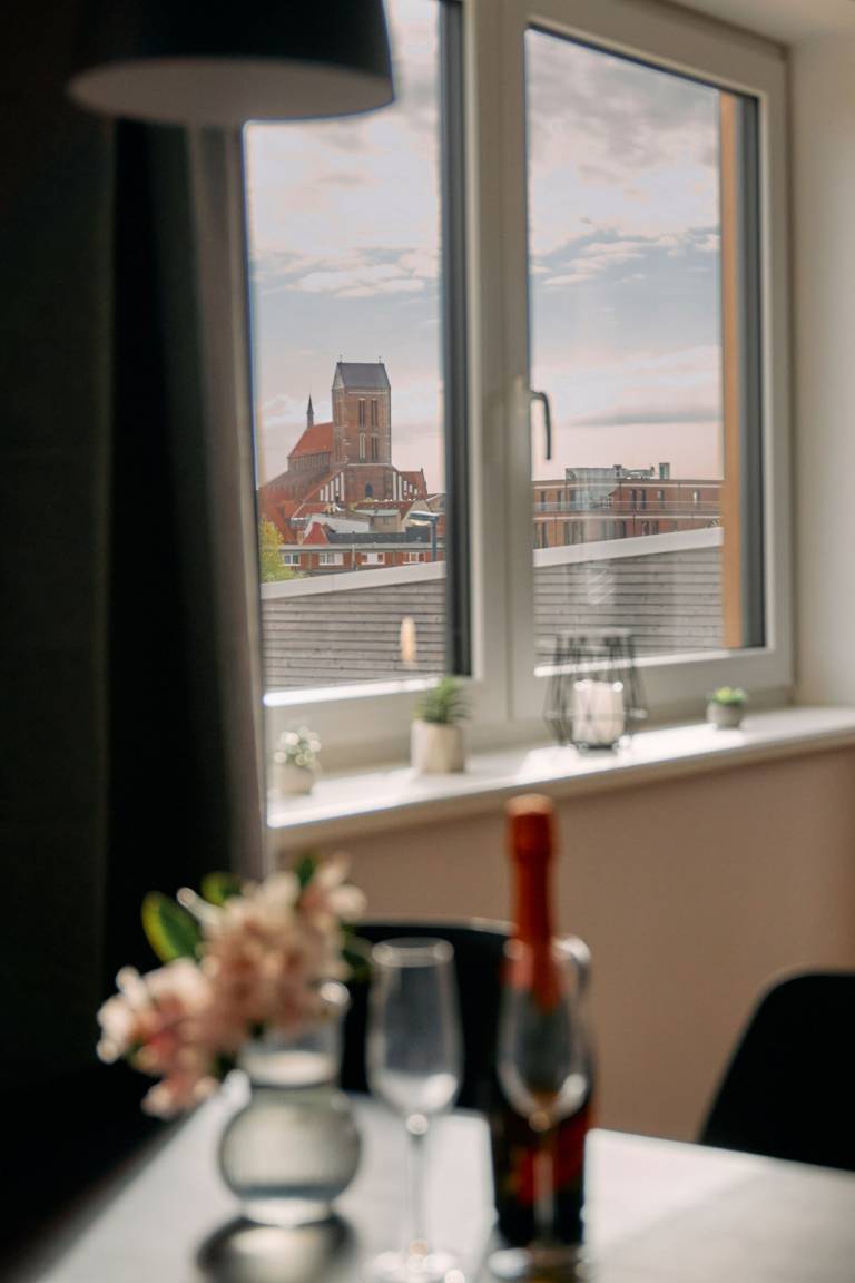 Der alte Hafen von Wismar mit seinen Restaurants und Flaniergeschäften ist in wenigen Gehminuten erreichbar. Zum historischen Marktplatz und den 4 gotischen Kirchen sind es etwa 12 Gehminuten.