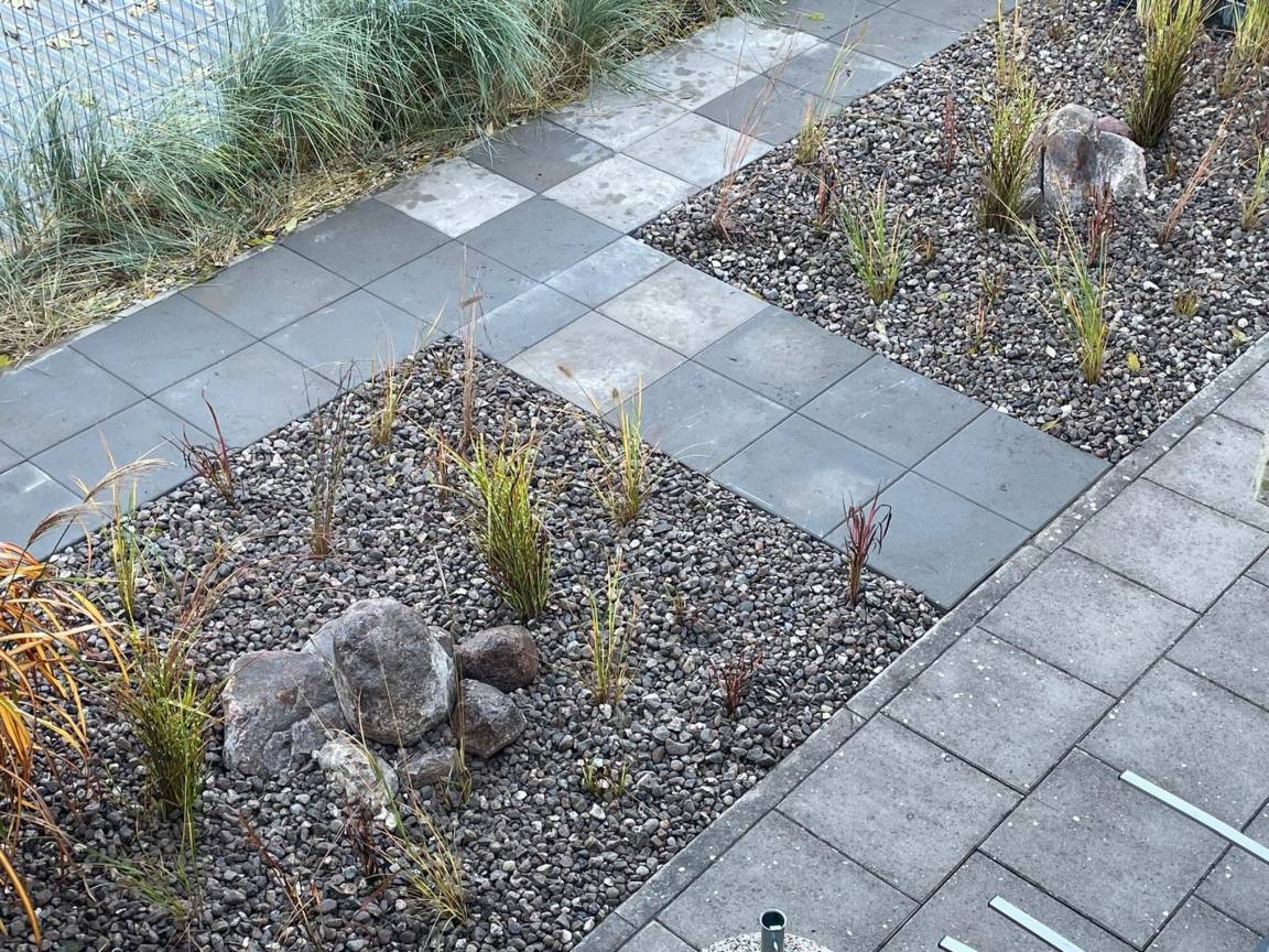 - Terrasse eingezäunt mit kleiner Grünfläche, 4 Stühle + Tisch