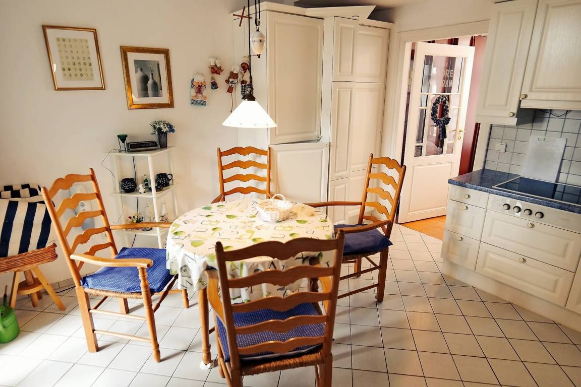- Küche vollausgestattet u.a. mit Kühlschrank mit Gefrierteil, Geschirrspüler, Backofen, Ceranfeld, Kaffeemaschine, Geschirr, Besteck, Gläser uvm.