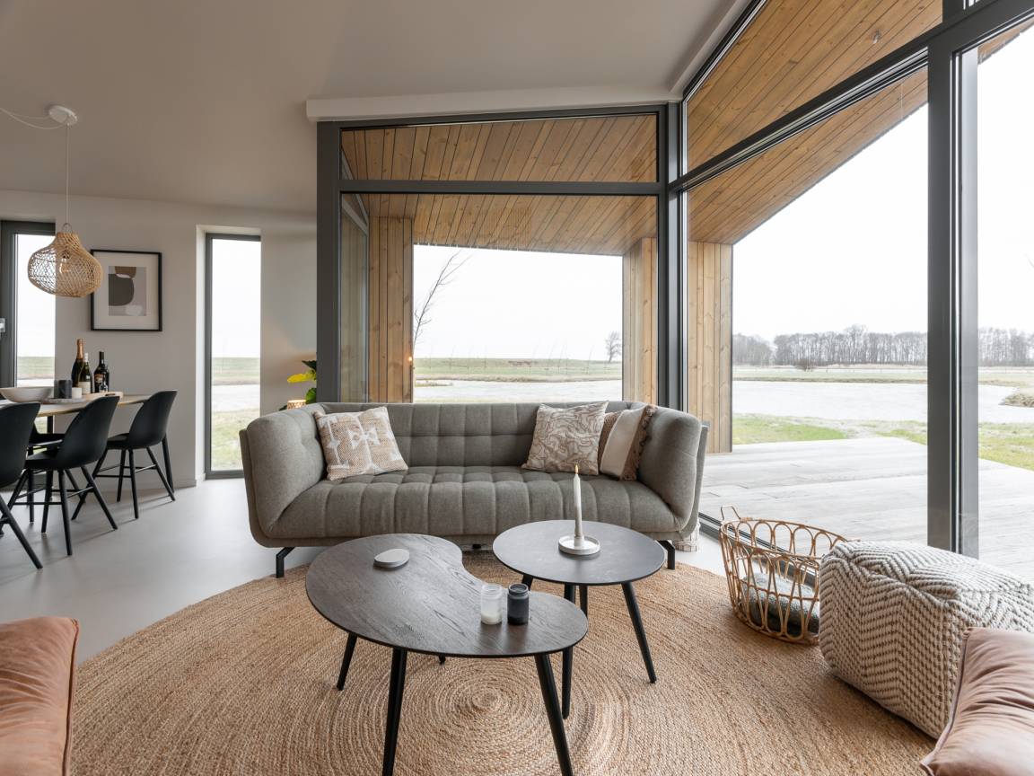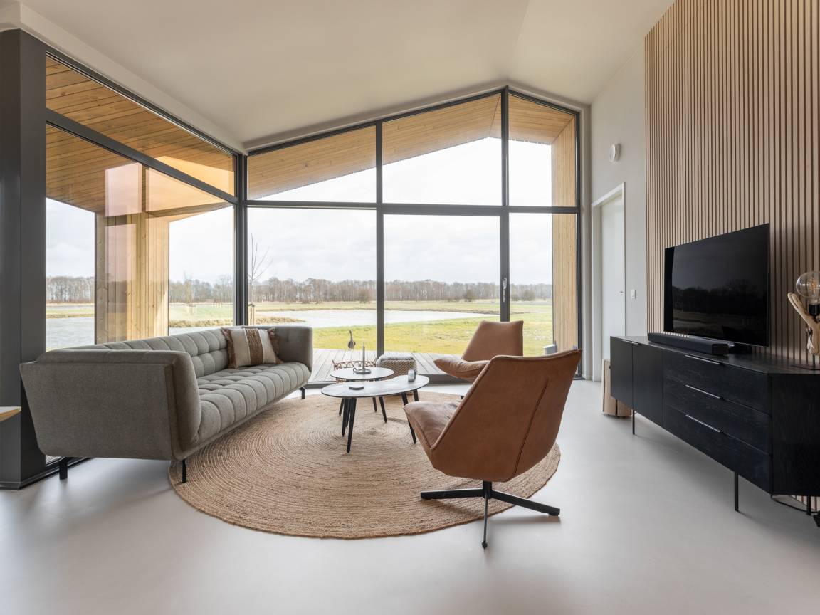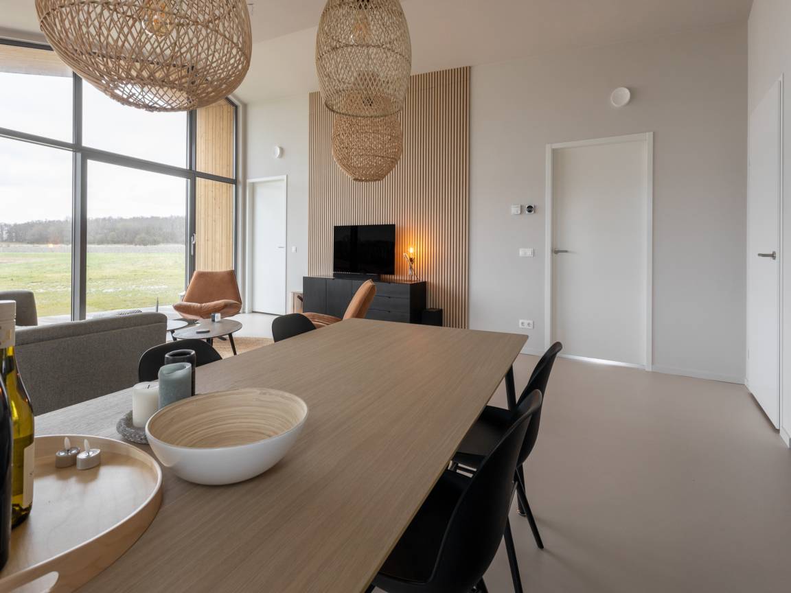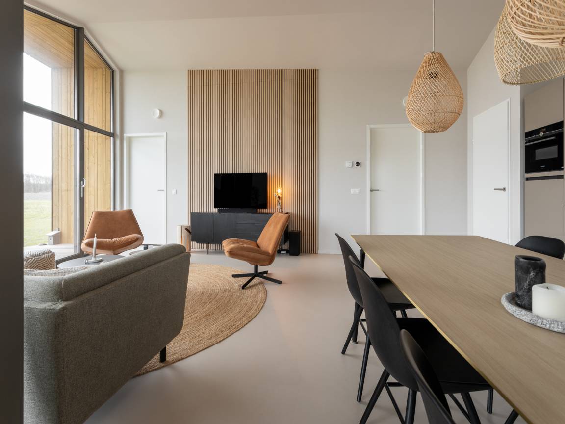 Hausbeschreibung : Freistehendes Naturhaus mit Wohnzimmer und offener Küche und Blick auf Wasser und Natur. Verfügt über 3 Schlafzimmer, eines mit eigener Dusche. Außerdem ein Badezimmer mit Dusche, Waschbecken und Toilette sowie eine separate Toilette. Mehrere Terrassen rund um das Haus, jede mit einem anderen Sitzbereich. EV-Ladestation in der Einfahrt (Aufladen mit eigenem Anbieter). Kinderbett und Hochstuhl vorhanden. Hunde nicht erlaubt. TV über NLZIET Premium