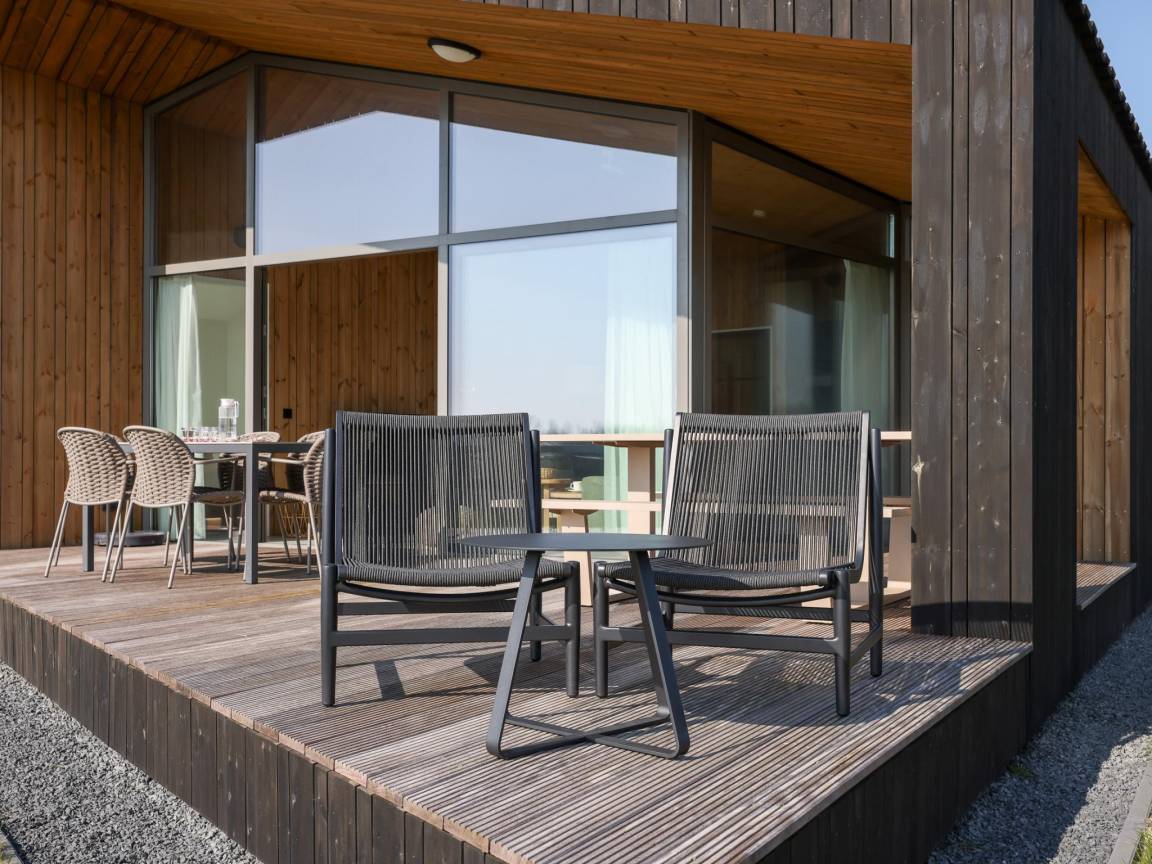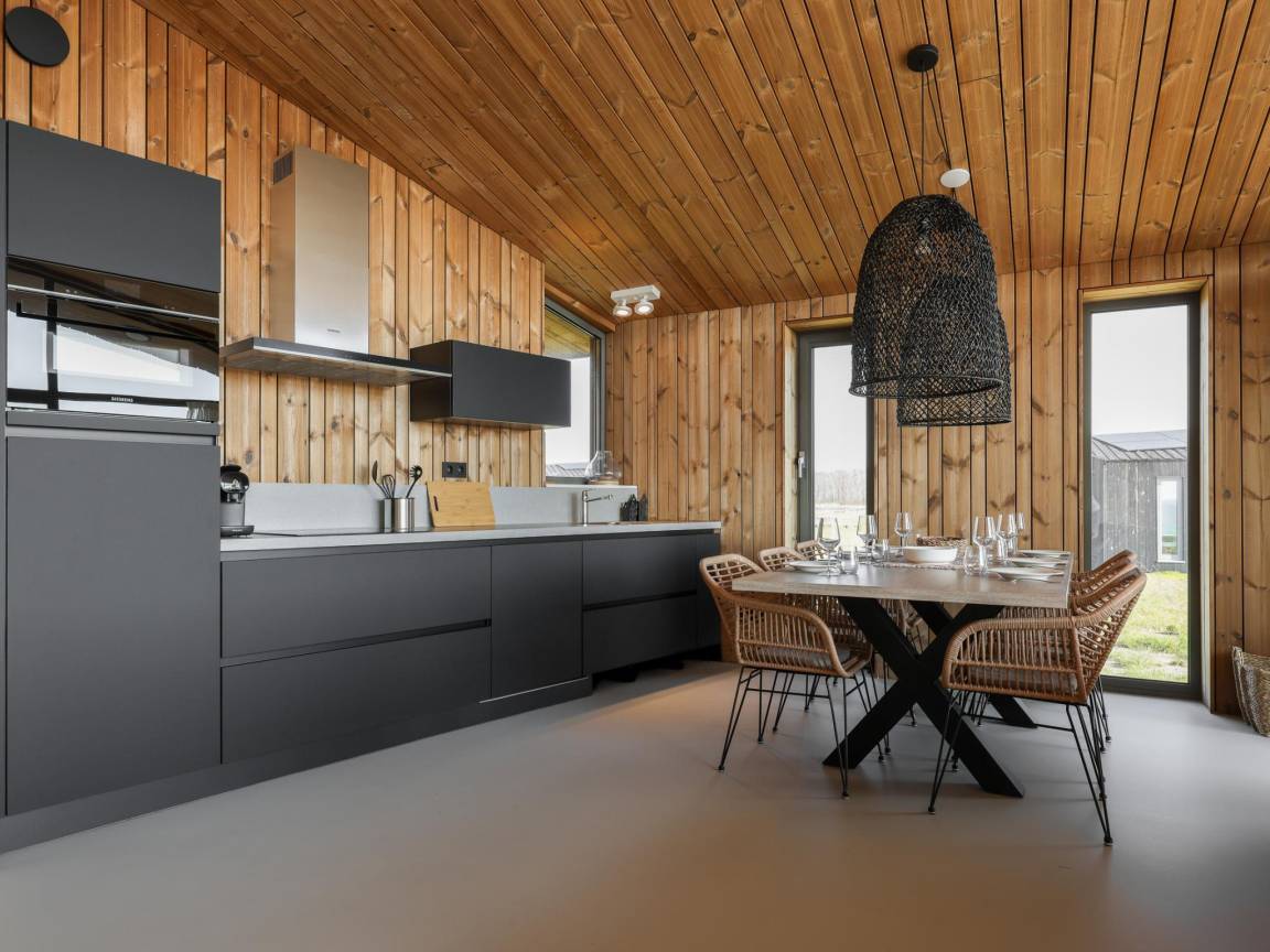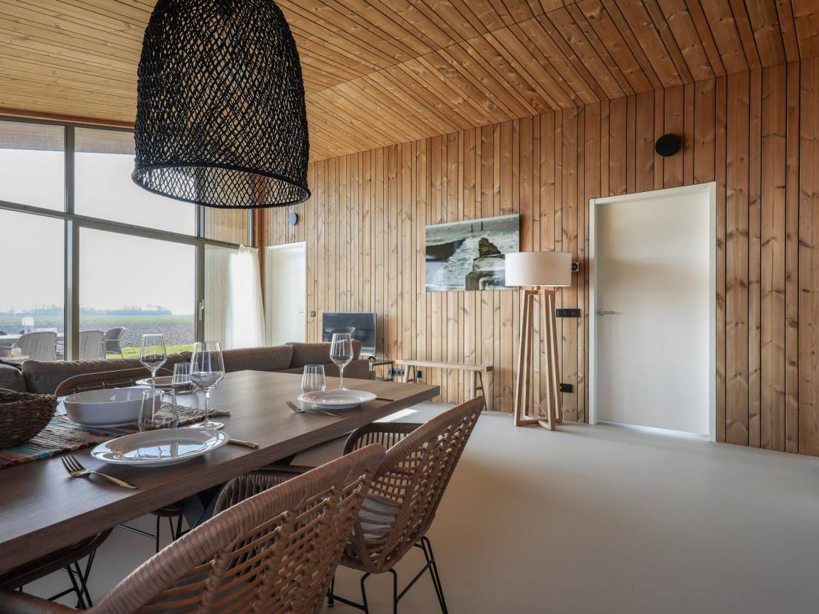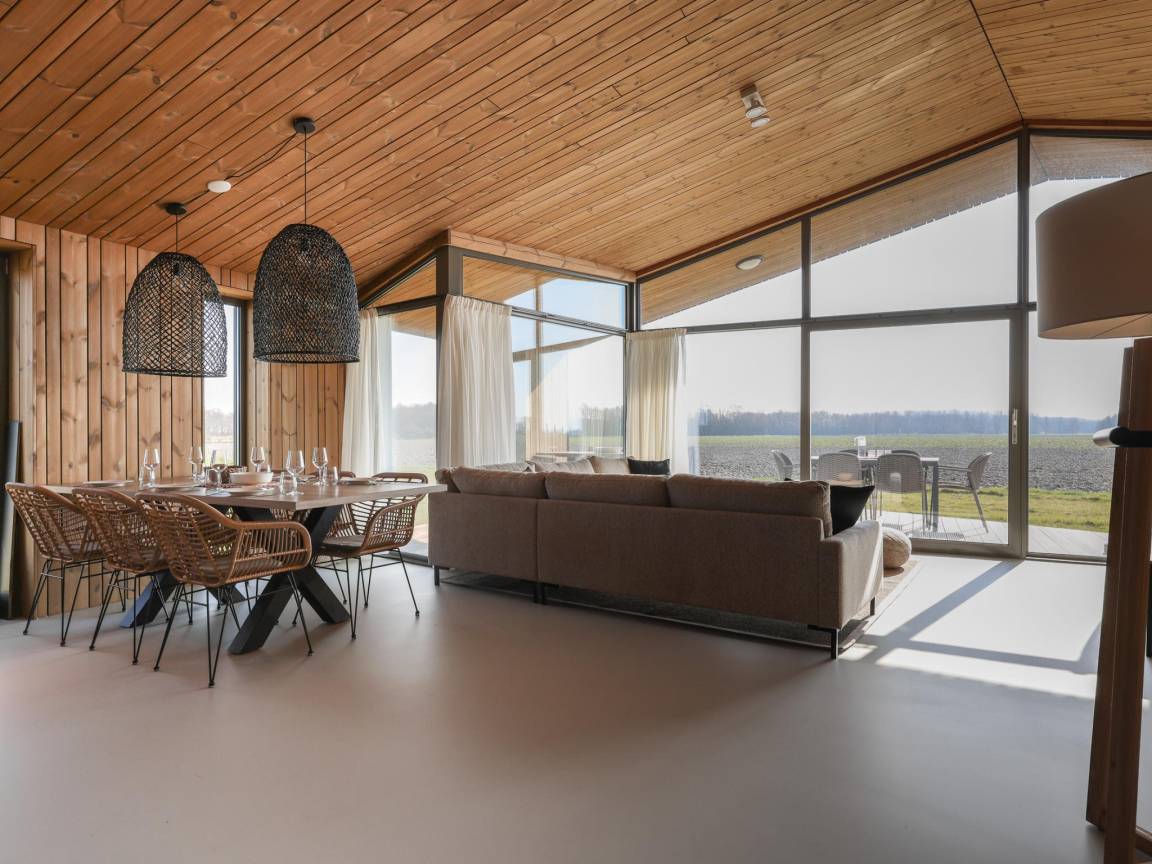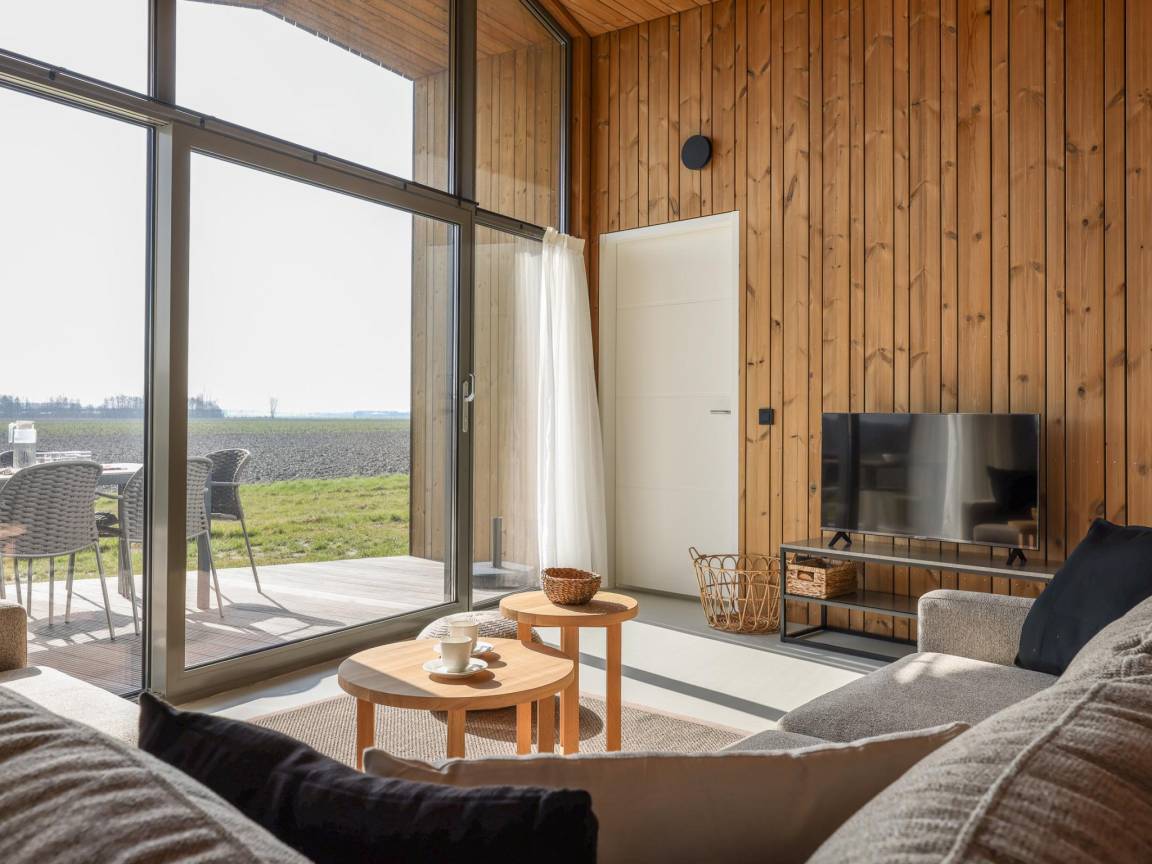 Hausbeschreibung : Freistehendes und nachhaltiges Ferienhaus im kleinen Park Heerlijkheid Vlietenburg, mitten in der ruhigen Zeeuwschen Polderlandschaft. Das Haus verfügt über drei Schlafzimmer, ein Badezimmer mit Dusche und Waschbecken sowie eine separate Toilette. Das warm eingerichtete Wohnzimmer mit offener Küche und Holzverkleidung schafft eine natürliche, entspannte Atmosphäre. Rund um das Haus befinden sich mehrere Terrassen, von denen man über die weitläufigen Felder blicken kann.
