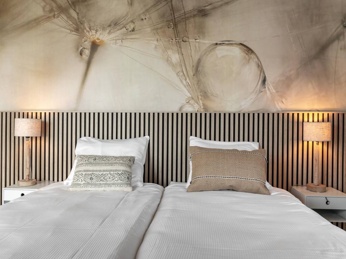 Hausbeschreibung : Freistehendes Naturhaus mit einem gemütlichen Wohnzimmer und offener Küche. Die Wohnung verfügt über zwei Schlafzimmer mit Doppelbetten, von denen eines auch als Einzelbetten benutzt werden kann. Das Badezimmer ist mit einer begehbaren Dusche, einem Doppelwaschbecken und einer wunderbaren Infrarotsauna ausgestattet. Rund um das Haus befinden sich mehrere Terrassen mit Blick auf das Naturschutzgebiet. Waschmaschine und Trockner sind vorhanden und Hunde sind willkommen.