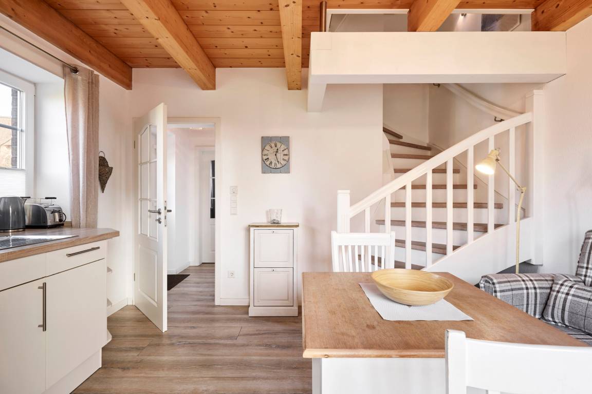Sie wohnen in Witsum - dem kleinsten Dorf der Insel. Schon die Anfahrt über die Traumstraße gibt Ihnen einen Vorgeschmack dessen, was Sie erwartet: Der weite Blick über die Salzwiesen, über die Nordsee nach Amrum. Hier legen Sie die Hektik des Alltages ab und werden einfach nur aus vollen Zügen genießen. Liebevoll und gemütlich eingerichtet ist das Hausteil genau richtig, um die schönste Zeit im Jahr zu genießen. Von der gemütlichen Wohnküche gelangen Sie auf die Terrasse. Hier genießen sie die Sonnenstrahlen und die leichte Nordseebrise.