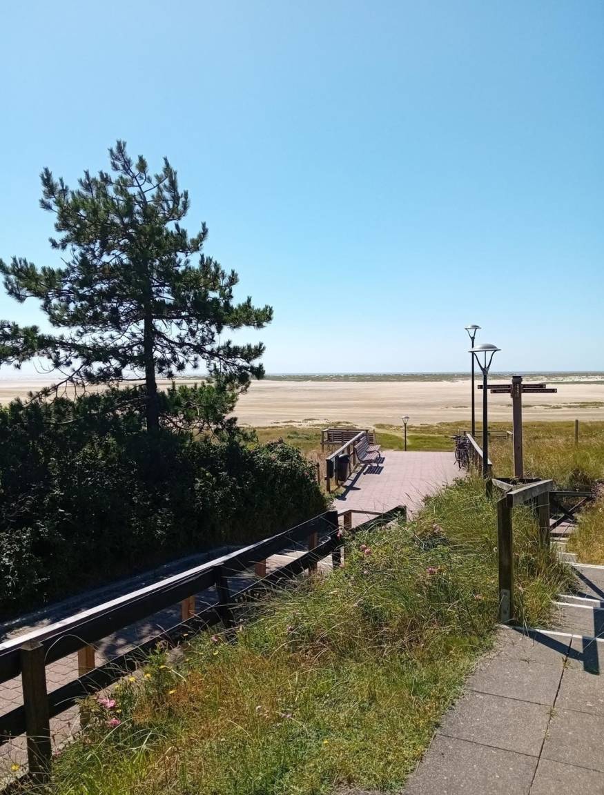 Die Ferienwohnung "Unterdeck" bietet einen gemütlichen Außenbereich, der sich ideal für Hundebesitzer eignet. Mit einem separaten Zugang auf der Rückseite des Hauses gelangt man schnell zur Obren Wandelbahn, einer beliebten Flaniermeile in Wittdün. Dieser Bereich ist besonders hundefreundlich und lädt zu entspannten Spaziergängen ein. Der Zugang zur Wohnung erfolgt über eine Treppe nach unten, was eine ruhige Atmosphäre im Souterrain schafft. Ob entspannte Stunden im Freien oder abwechslungsreiche Ausflüge – der Außenbereich der "Obere Wandelbahn 25" bietet zahlreiche Möglichkeiten, die frische Luft zu genießen. Hunde sind herzlich willkommen und im Preis inbegriffen, was den Aufenthalt für Vierbeiner und ihre Herrchen oder Frauchen besonders angenehm macht.