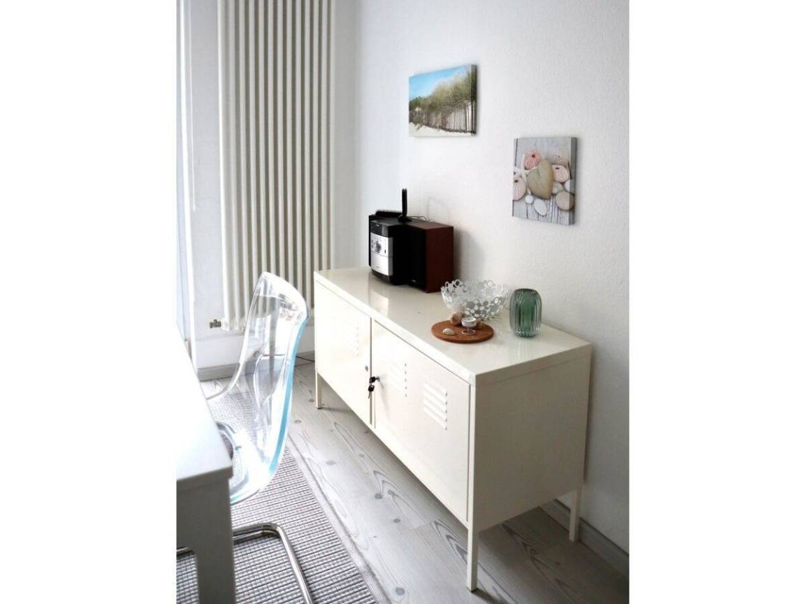 Die Ferienwohnung "Unterdeck" befindet sich im Souterrain des Wohnhauses Obere Wandelbahn 25 und hat einen separaten Zugang auf der Hinterseite des Hauses. Der Zugang zur Wohnung erfolgt über eine Treppe nach unten. Die Unterkunft bietet ein kleines Schlafzimmer von etwa 5 m², ausgestattet mit einem komfortablen Doppelbett (1,40 m x 2,0 m). Gemeinschaftliche Ausstattungen sind nicht angegeben, sodass die Küche und weitere Wohnbereiche ausschließlich privaten Zwecken dienen. Die Lage ermöglicht einen schnellen Zugang zur oberen Wandelbahn, der Flaniermeile von Wittdün, die besonders hundefreundlich ist. Hunde sind in dieser Ferienwohnung willkommen und im Preis inbegriffen.