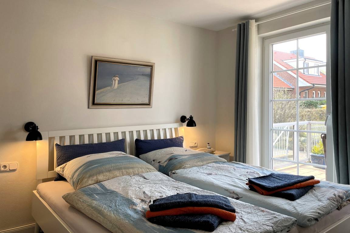 Ein absolutes Highlight ist der Balkon, die direkt vom Wohn-/Schlafzimmer zugänglich ist. Von hier aus genießen Sie einen wunderbaren Blick auf die Insel. Die südwestliche Ausrichtung verspricht sonnendurchflutete Nachmittage und zauberhafte Sonnenuntergänge – perfekt für entspannte Momente im Freien. Das moderne, innenliegende Bad mit flacher Dusche, WC und dezenter Lüftung komplettiert den Wohnkomfort. Für zusätzliche Annehmlichkeiten sorgen wir im Untergeschoss: Hier finden Sie für jede Wohneinheit ein eigenes Gefrierfach und können Waschmaschine und Trockner kostenlos nutzen. So wird Ihr Aufenthalt nicht nur gemütlich, sondern auch besonders praktisch. Unsere Ferienwohnung ist mehr als nur eine Unterkunft – sie ist Ihr persönlicher Rückzugsort, der Geborgenheit, Komfort und Urlaubsfreude perfekt vereint. Wir heißen Sie herzlich willkommen und freuen uns darauf, Ihnen einen unvergesslichen Aufenthalt zu bereiten!