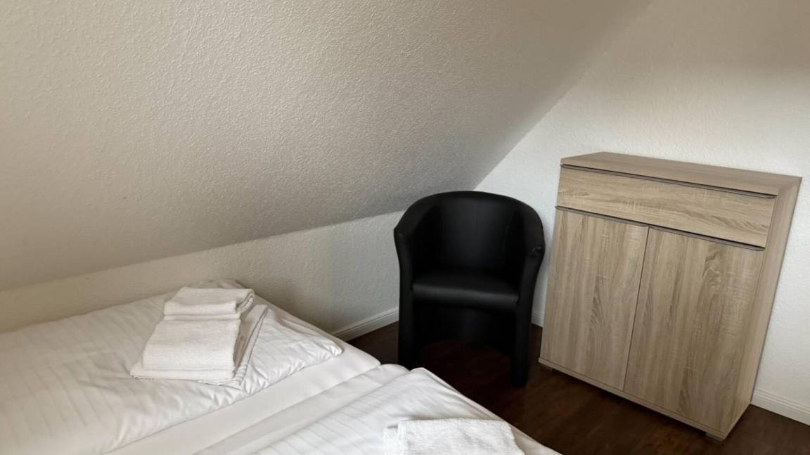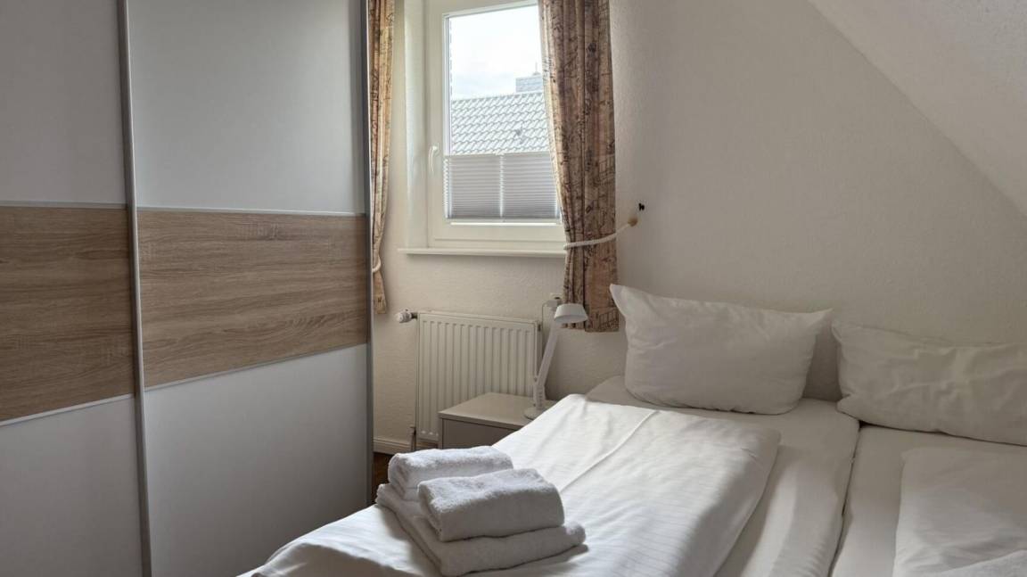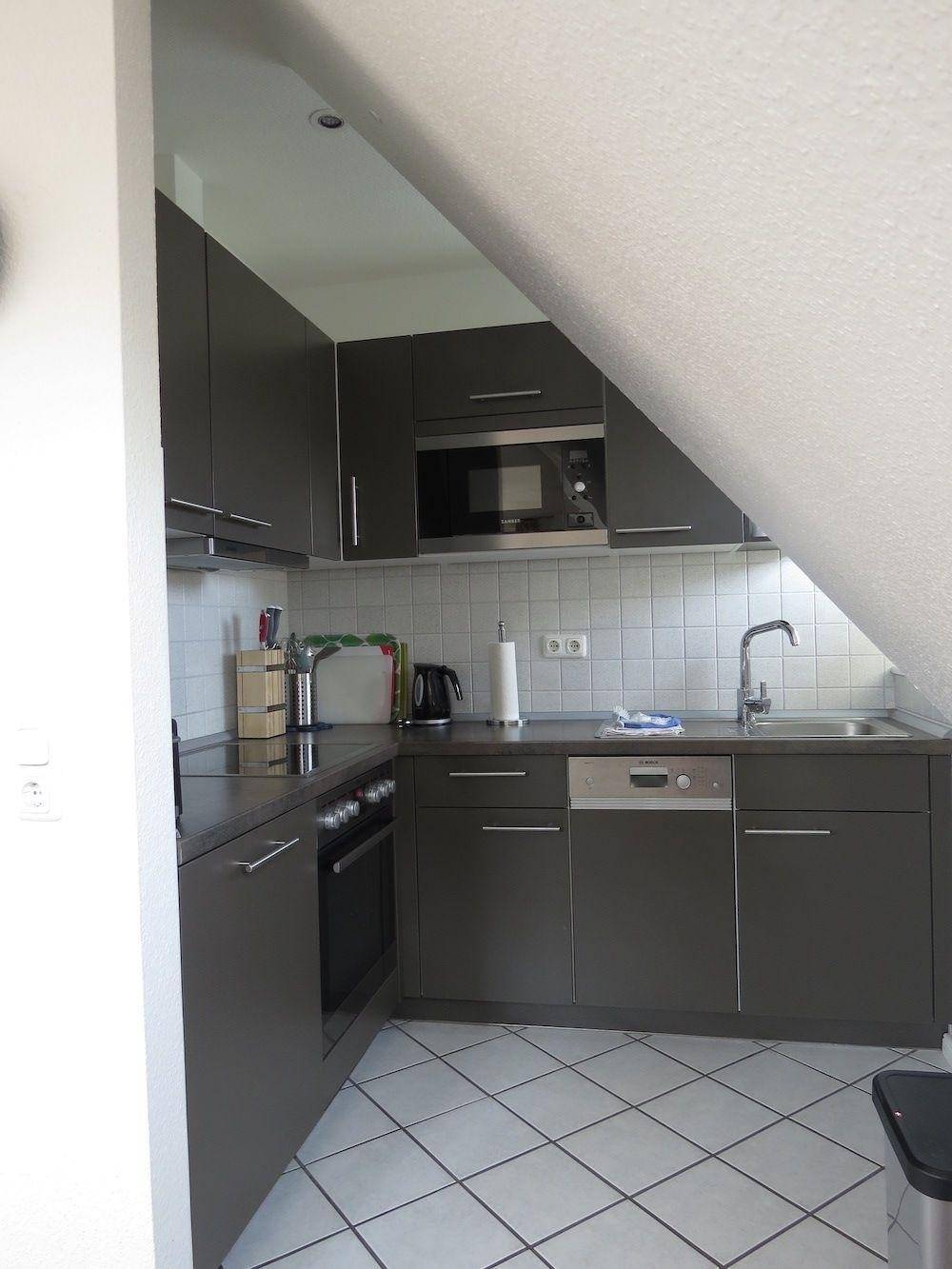 Die Dachgeschosswohnung mit einer Fläche von ca. 65 qm bietet Platz für bis zu 4 Personen. Der Schlafbereich ist ausgestattet mit einem Doppelbett, das über getrennte Matratzen (180 x 200 cm) verfügt. Das Badezimmer ist modern gestaltet und umfasst eine Dusche mit Duschtrennwand, ein WC sowie ein Waschbecken. Weiterhin sind ein Fön und ein Badezimmerschrank vorhanden. Im Wohnbereich befinden sich eine gemütliche Essecke, eine Couch, ein Sessel und ein Fernseher, die zum Entspannen einladen. Die Küche ist mit einem 4-Platten-Ceranfeld, einem Backofen, einem Kühlschrank, einer Espresso-Maschine, einem Toaster, einer Kaffeemaschine und einem Mixer vollständig ausgestattet. Alle Ausstattungen sind privater Natur und stehen ausschließlich für die Gäste der Wohnung zur Verfügung.