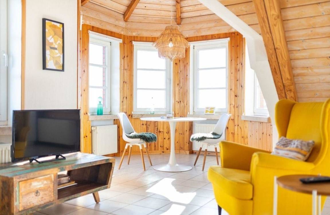 Ideale Unterkunft für zwei: Meerblick, Balkon, großzügiger Wohn- und Essbereich, sowie Nähe zum Zentrum Wittdüns. Entspannung pur – auch für den vierbeinigen Begleiter.