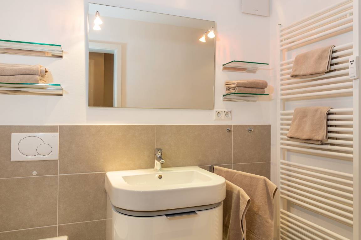 „Die Ferienwohnung war nahezu perfekt ausgestattet und eingerichtet. Einzig ein paar zusätzliche Haken im Gäste-WC und in den beiden Schlafzimmern wären evtl noch gewinnbringend. Darüberhinaus war die Wohnung sehr sauber und gepflegt. Da konnte man von den Gängen im Haus leider nicht behaupten. Da wurde in den zwei Wochen weder mal gefegt oder gar gewischt.“