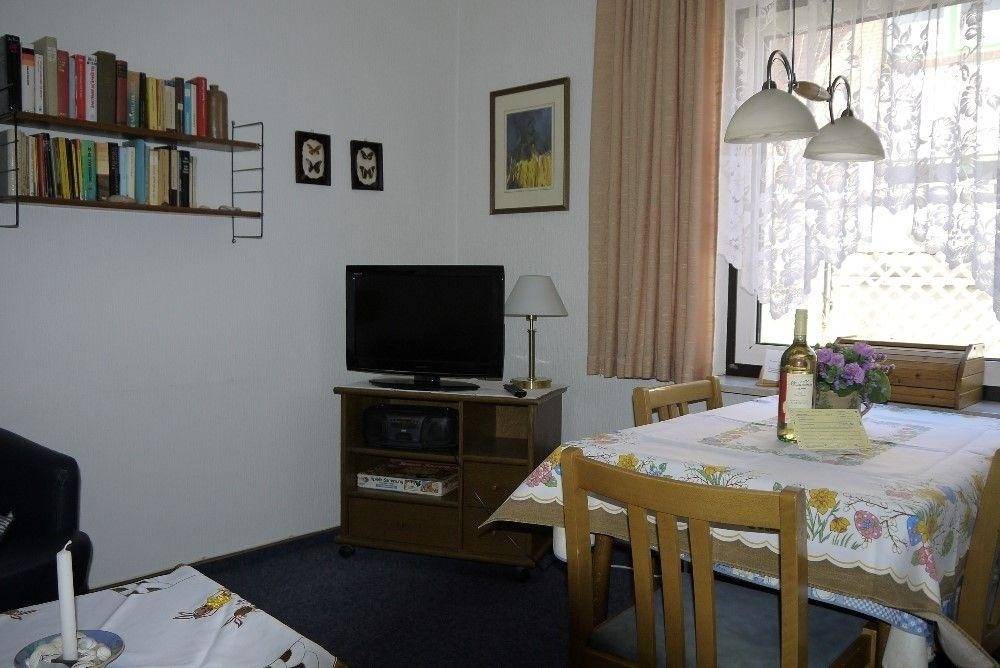 Die Wohnung Schwertlilie im Haus Godewind, gelegen im Hochparterre, bietet auf ca. 38 m² Platz für bis zu 2 Erwachsene und 1 Kind. Die Ausstattung umfasst eine offene Küche mit Herd, Backofen und Kühlschrank mit Gefrierfach, jedoch ohne Spülmaschine. Das Schlafzimmer ist mit einem Doppelbett (1,80 m x 2,00 m), einem Schrank, einer Kommode und einem Jugendbett ausgestattet. In der Wohnstube befinden sich ein Schlafsofa, ein Sessel und ein Esstisch mit 3 Stühlen. Das Bad verfügt über eine Dusche mit Fenster. Im Hausflur steht eine kleine Bibliothek zur Verfügung. Kostenfreies WLAN ist vorhanden, jedoch kann es gelegentlich zu Störungen kommen. Eine Nichtraucherwohnung, Kinderbetten und Hochstühle sind auf Anfrage erhältlich. Zudem stehen 2 gemeinschaftliche Terrassen mit Gartenmöbeln zur Nutzung bereit. Parkplätze und Fahrradständer sind am Haus vorhanden. Haustiere sind auf Anfrage gestattet.