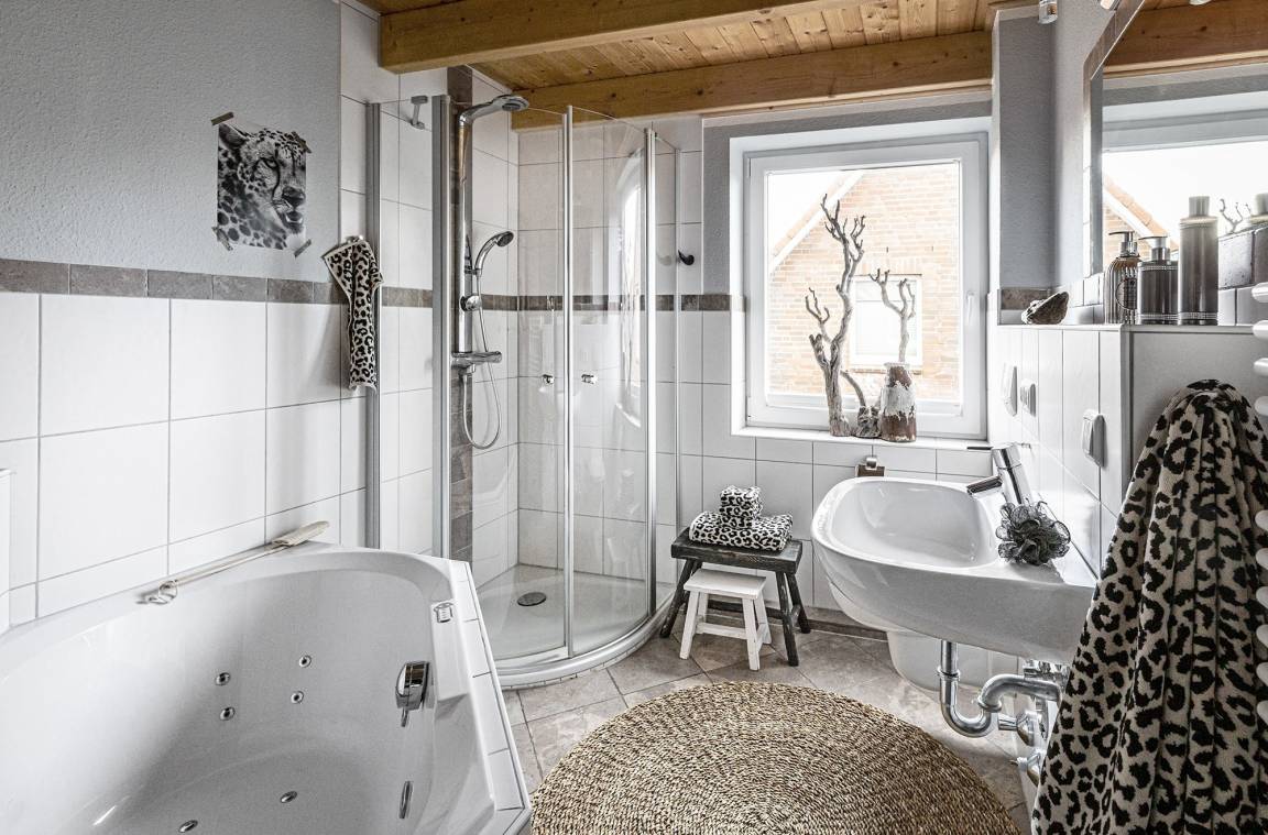„Wohnung ist schön eingerichtet, sehr gut ausgestattet und sehr gut gereinigt. Parkplatz bestens. Die Wohnung hat die ideale Lage für uns, da wir den Tag gerne in Wittdün starten mit Einkauf bei Edeka oder Bäcker und in der „Strandbar Seehund“ oder in der Blauen Maus ausklingen lassen Gut zu Fuß zu erreichen. Whirlpool-Badewanne mit Bedienung des seitlichen Mechanismusses nicht hingekriegt. Wasser lief immer ab und blieb nicht in der Wanne. Das lag wohl an uns. Einige Spülmaschinen-Tabs vorhanden, 2 Pods für die Waschmaschine wären ein Sahnehäubchen gewesen. Wäschetrockner und Leifheit-Wäscheständer sind vorhanden, nur mehr als drei Wäscheklammern wären schön. Worauf man sich nur einstellen müsste: Nach der ebenerdigen Eingangstür geht es erst mal eine steile Treppe hoch. Mit Koffer erst mal umständlich. Ich würde das nächste Mal alles in kleinere Rucksäcke oder Taschen packen. Mit den Klamotten eine weitere enge Holztreppe in das Schlafzimmer erklimmen, ist auch eine Herausforderungen. Die Bett-Toilettendistanz ist im schlaftrunkenen Zustand auch nicht ganz unproblematisch, auch wenn es am Anfang der Treppe ein Licht mit Bewegungssensor gibt, was man abnehmen kann. „Zu Risiken und Nebenwirkungen...“ lesen Sie in diesem Fall die Wohnungsbeschreibung gründlich durch. Ansonsten alles ziemlich perfekt.“
