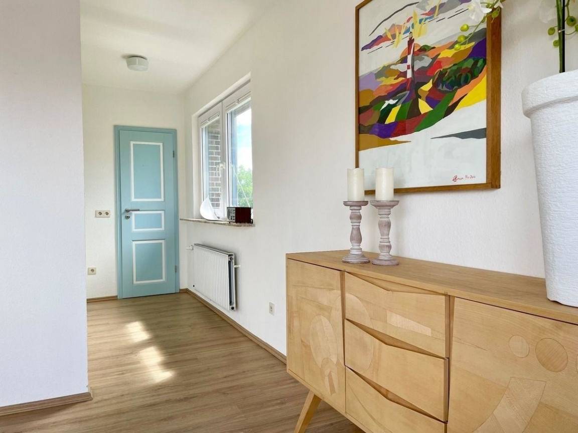 In unmittelbarer Nähe befinden sich zahlreiche Einkaufsmöglichkeiten, Restaurants und Geschäfte, die problemlos fußläufig erreichbar sind. Die zentrale Lage ermöglicht es, die Attraktionen Wittdüns sowie die umliegenden Strände bequem zu erkunden.