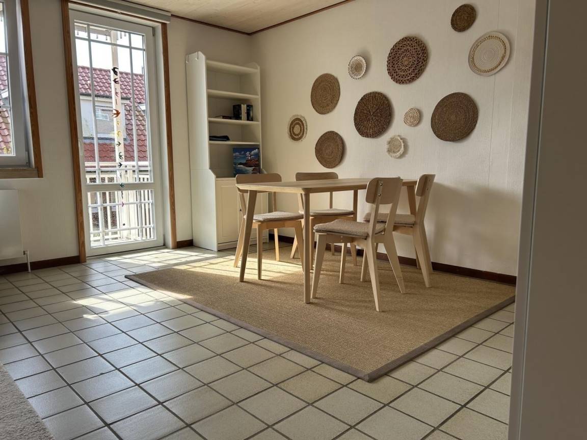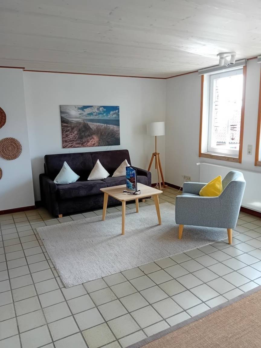 Die Ferienwohnung *Apfelmus*, ideal für 2 Personen, bietet sonnendurchflutete Räume, eine zentrale Lage auf Amrum und einen Balkon – der perfekte Rückzugsort für gemeinsame Momente mit Hund.