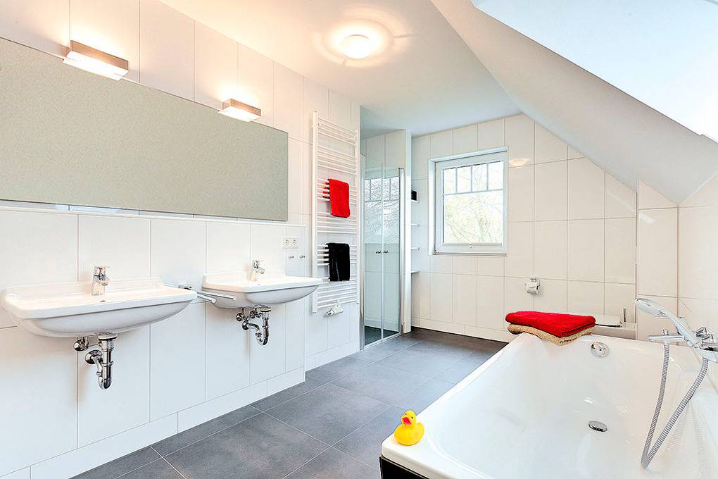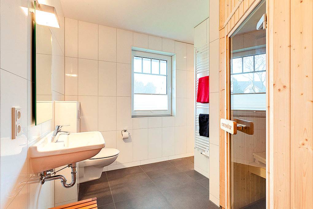 Haus: Zwei komfortable Ferienhäuser mit Sauna und Kaminofen. Moderne, geschmackvolle Einrichtung. Fußbodenheizung. Nichtraucherhäuser. Kostenloser Internetzugang über W-Lan. Großzügige Terrasse mit Sitzmöbeln. Schönes Gartengrundstück mit angrenzendem Bachlauf. Fahrradschuppen. 2 kostenfreie Pkw-Stellplätze pro Haus.